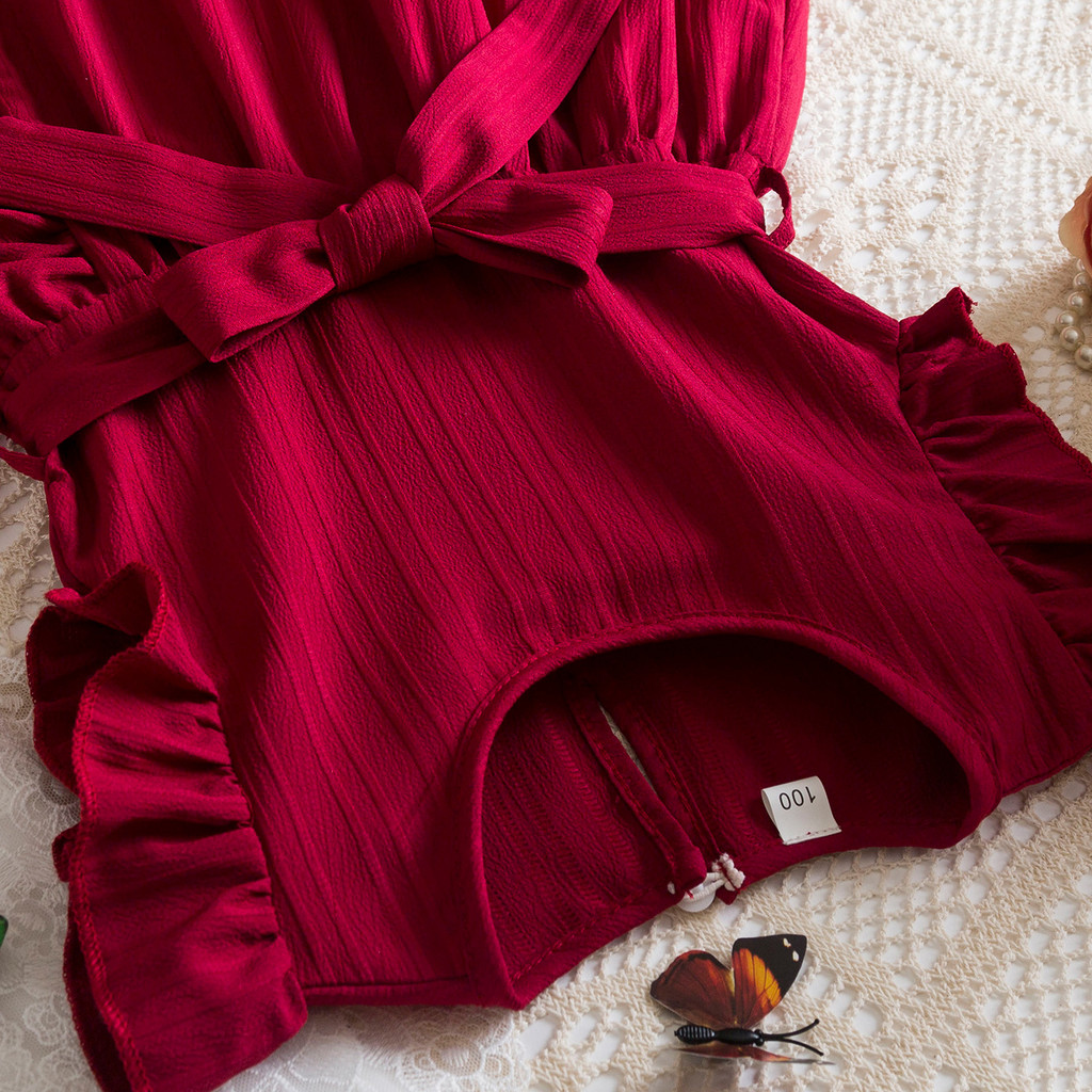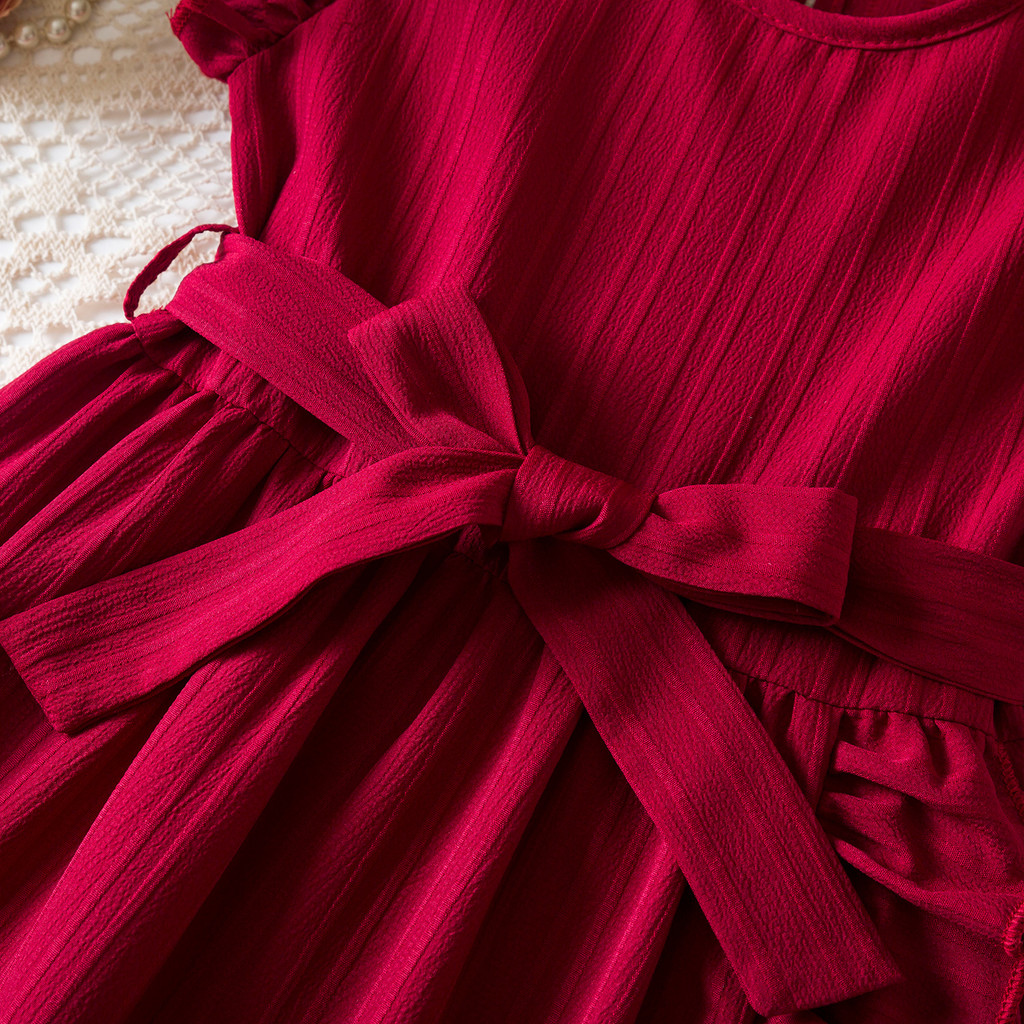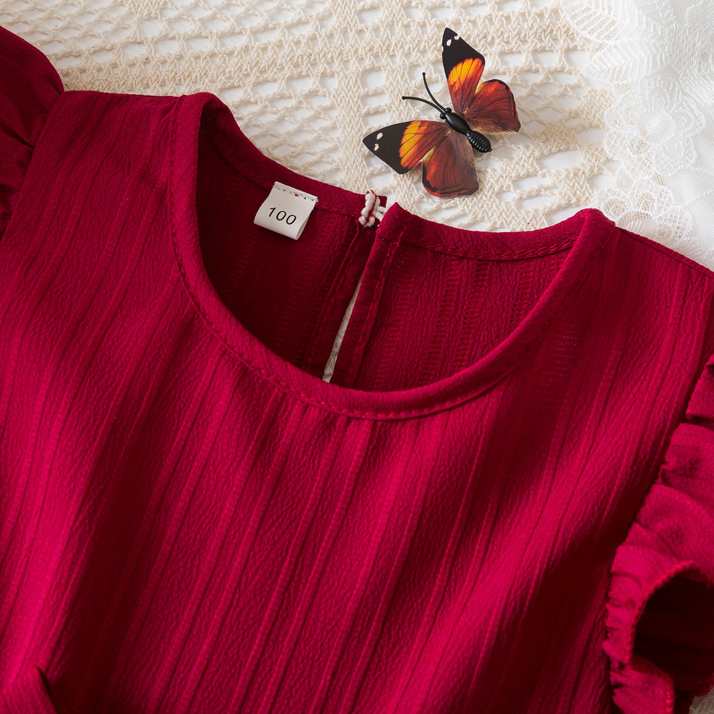 Vestido De Moda De Verão Para Meninas Novo Padrão 3 A 8 Anos Cor Sólida Listra Ondulada Manga Voadora Vestidos