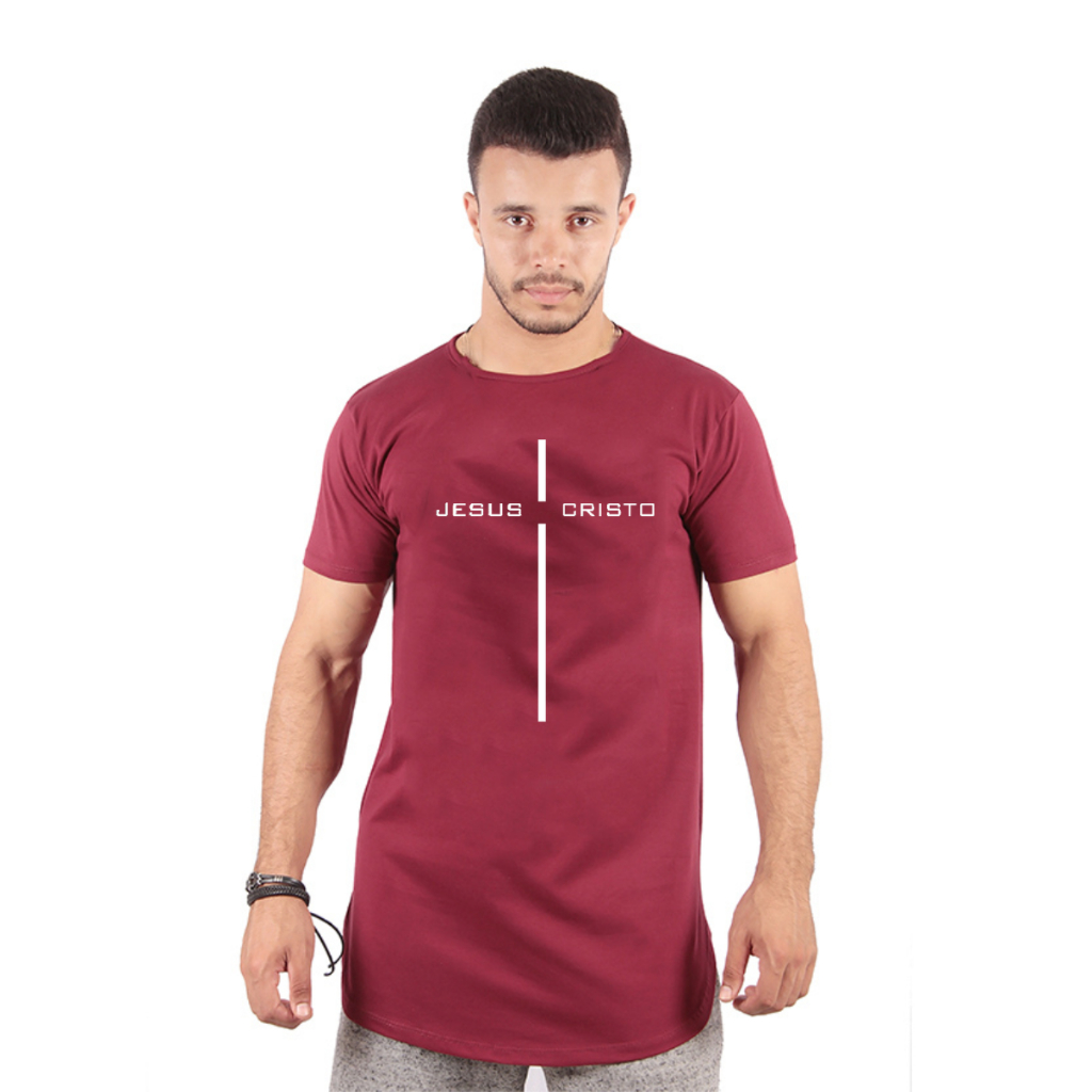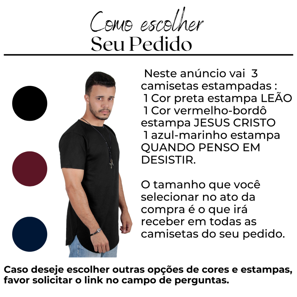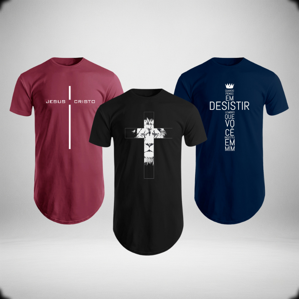 Kit com 3 Camisetas Masculina Gospel Longline oversized Swag Manga Curta Algodão Básica Evangélica