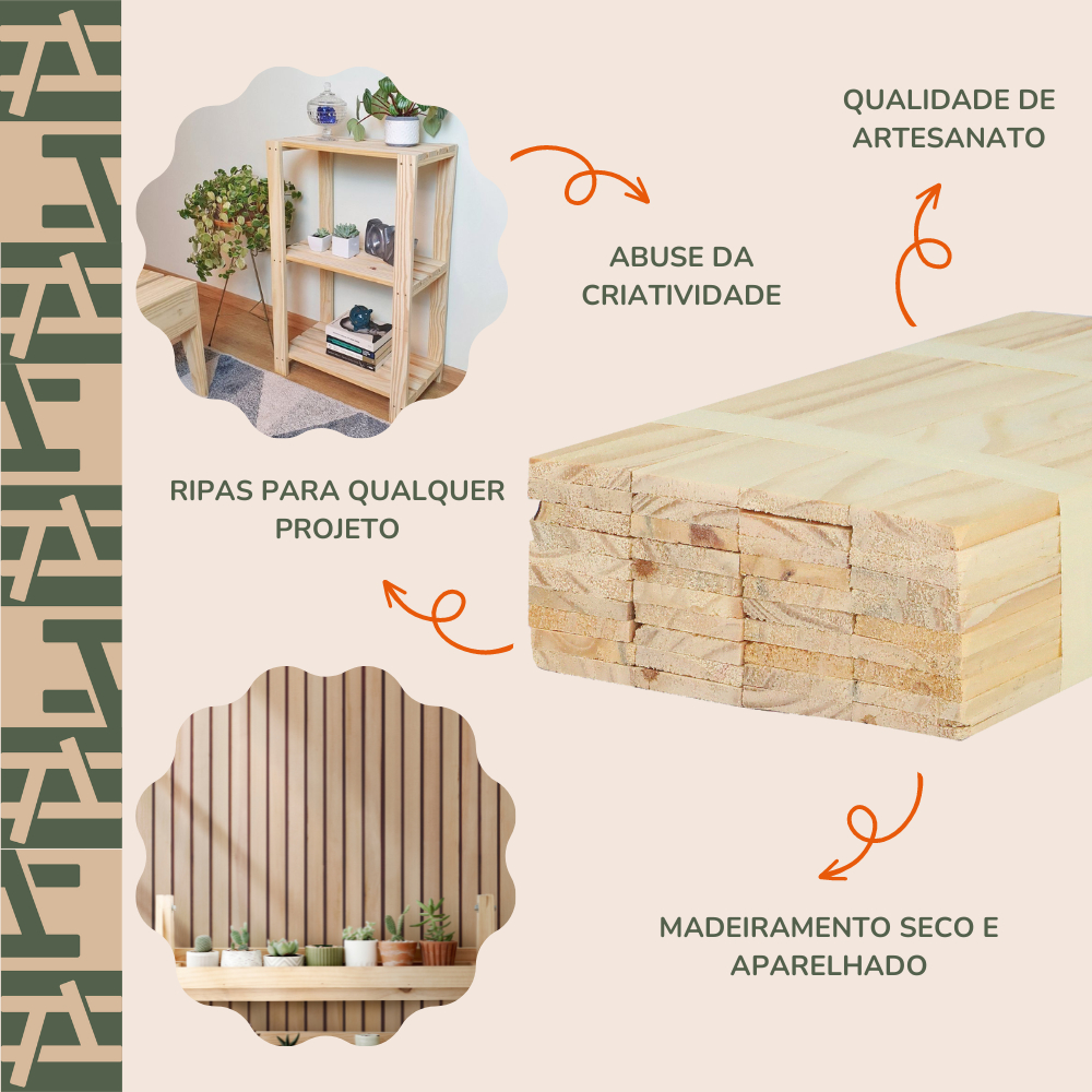 40 Ripas Sarrafo Pinus 4x1cm | Madeira Aparelhada para Painel Ripado, Artesanato e Decoração