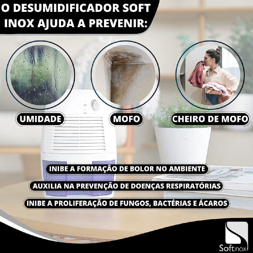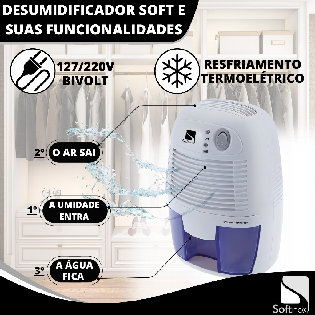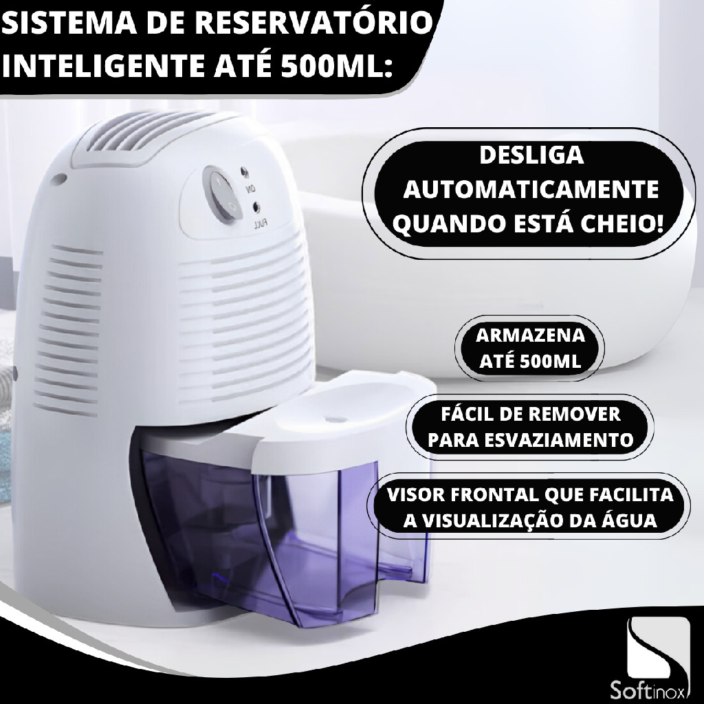 Desumidificador Elétrico Portátil Bivolt Antimofo 500ml Branco