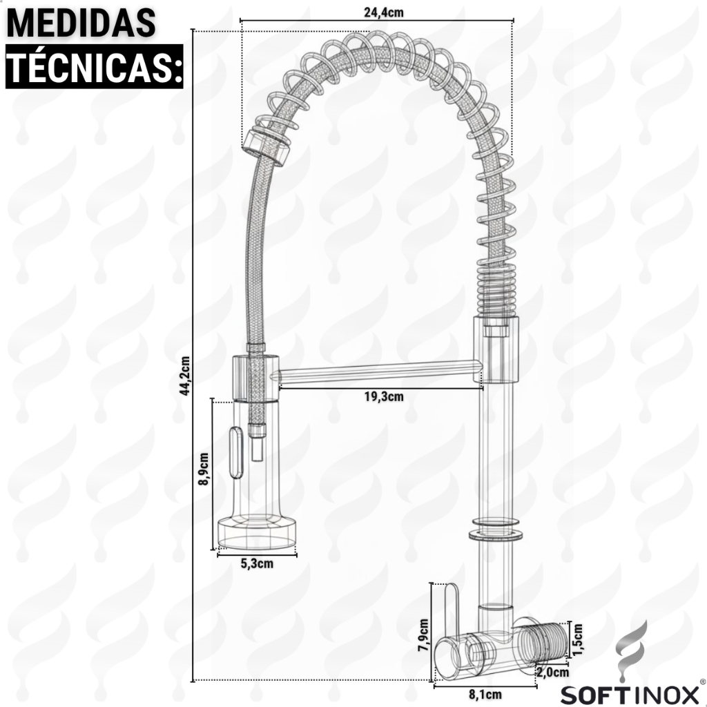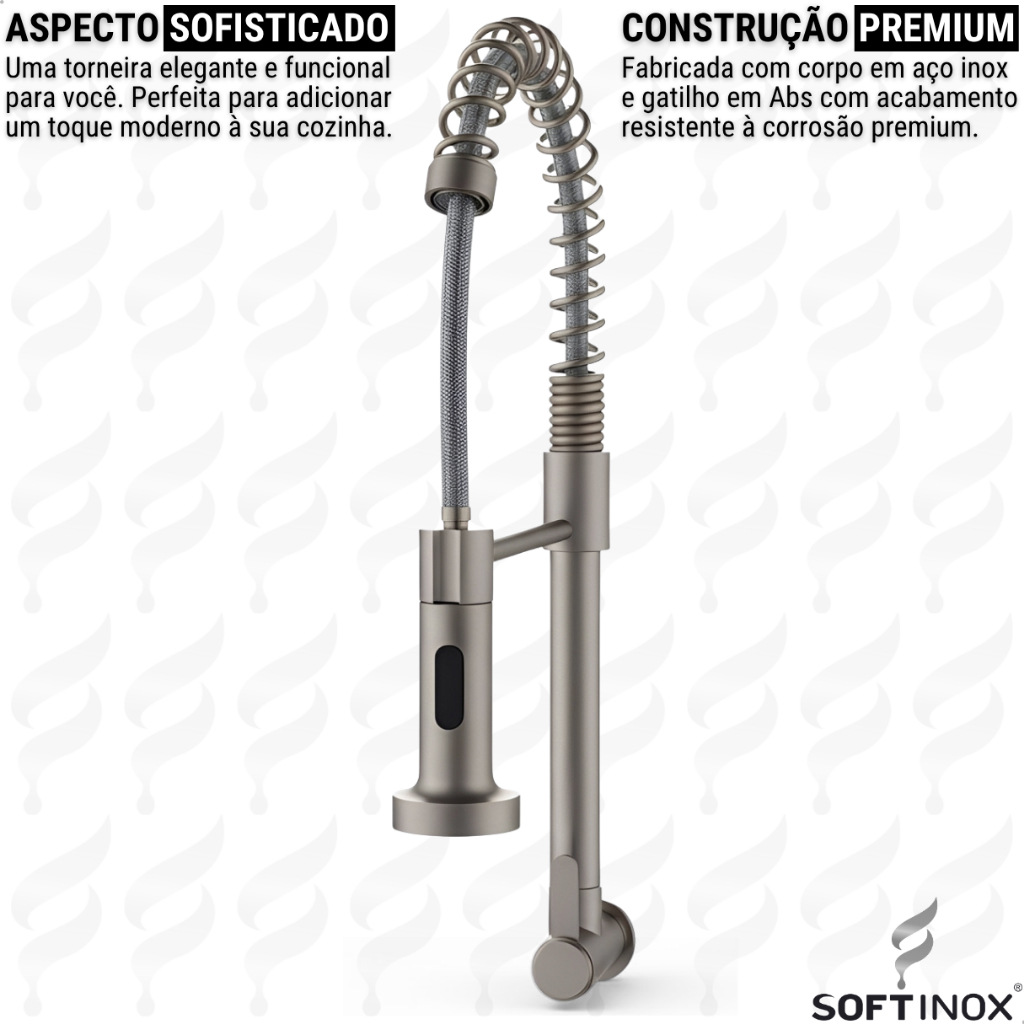 Torneira Gourmet Parede Para Pia Cozinha Flexível Duplo Jato 1/4 Volta Luxo Escovada Cromada Preta