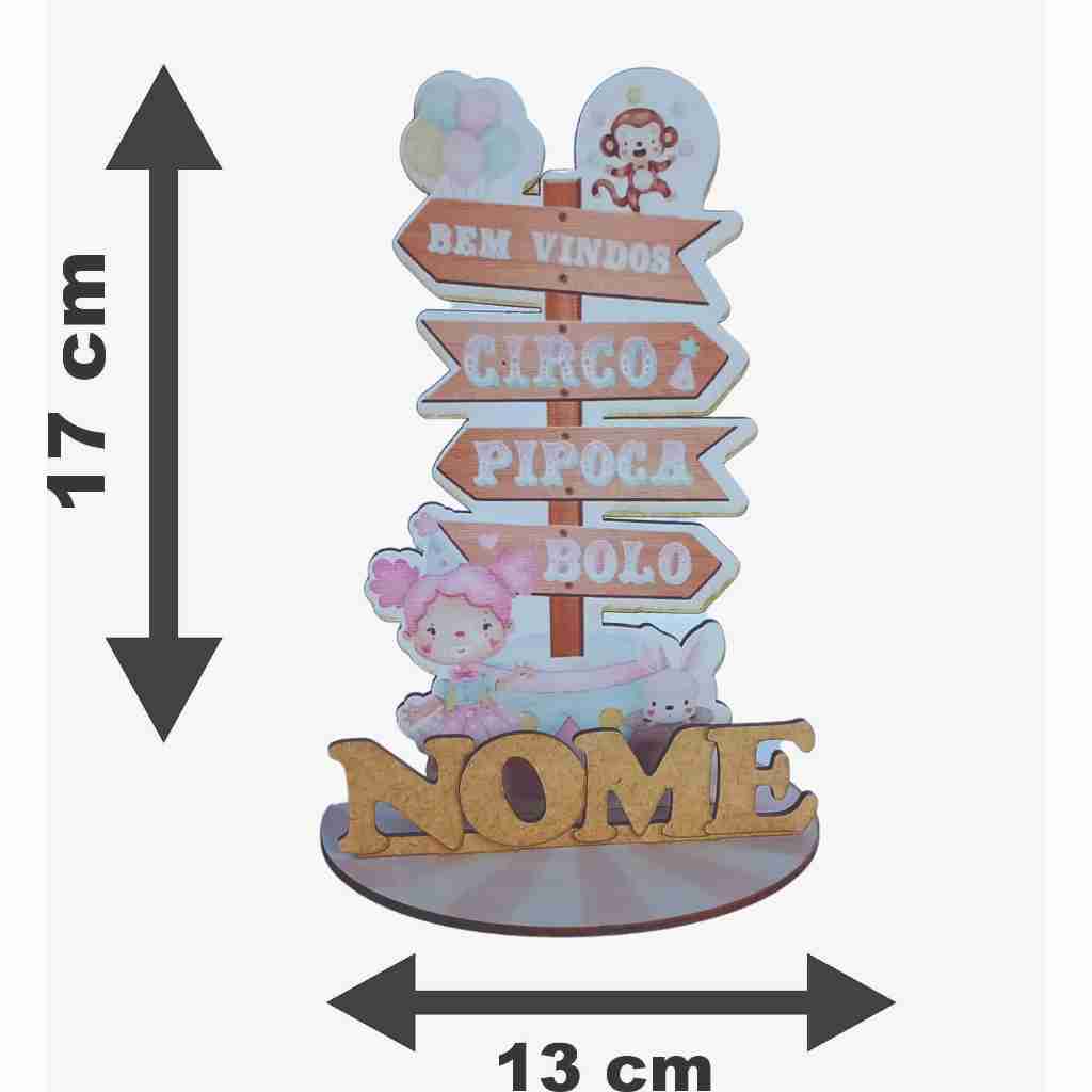 12 Centro de Mesa Placa Circo Rosa Menina Personalizado Lembranças Festa