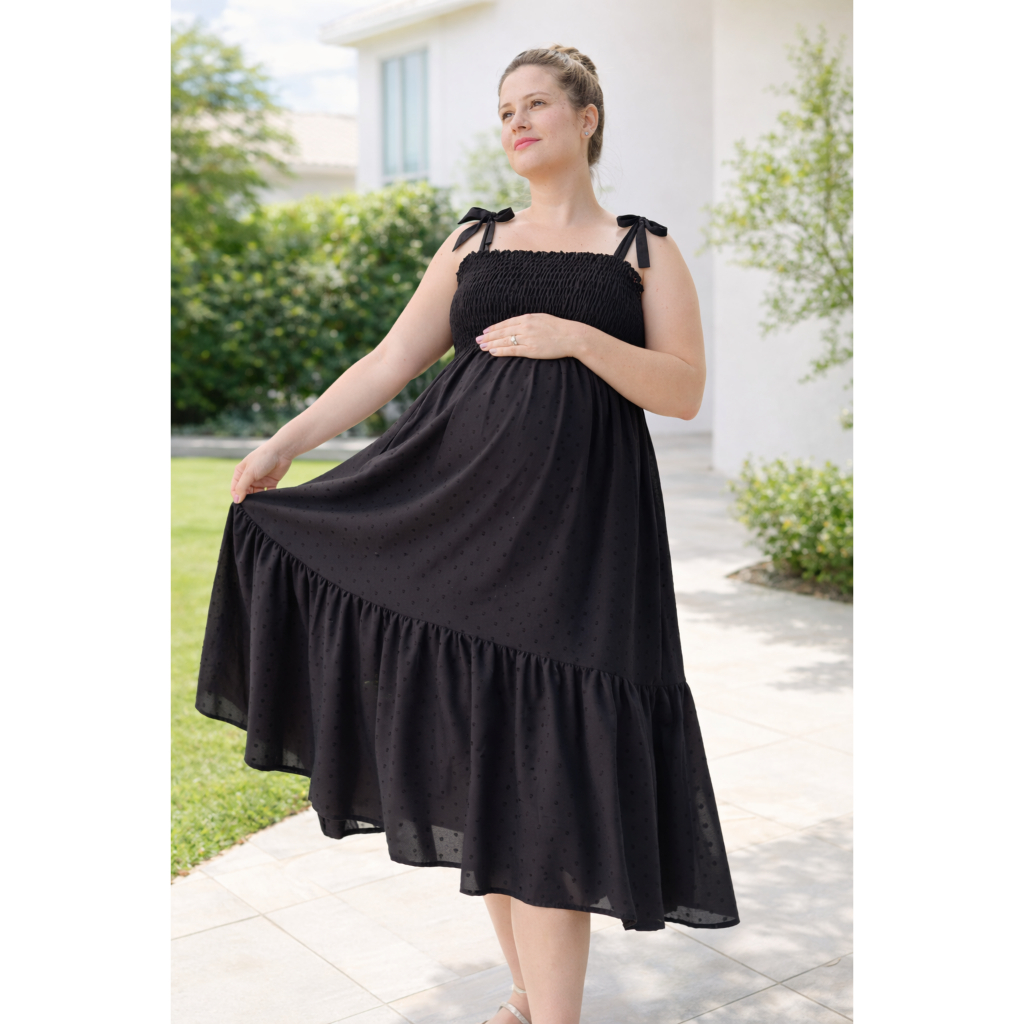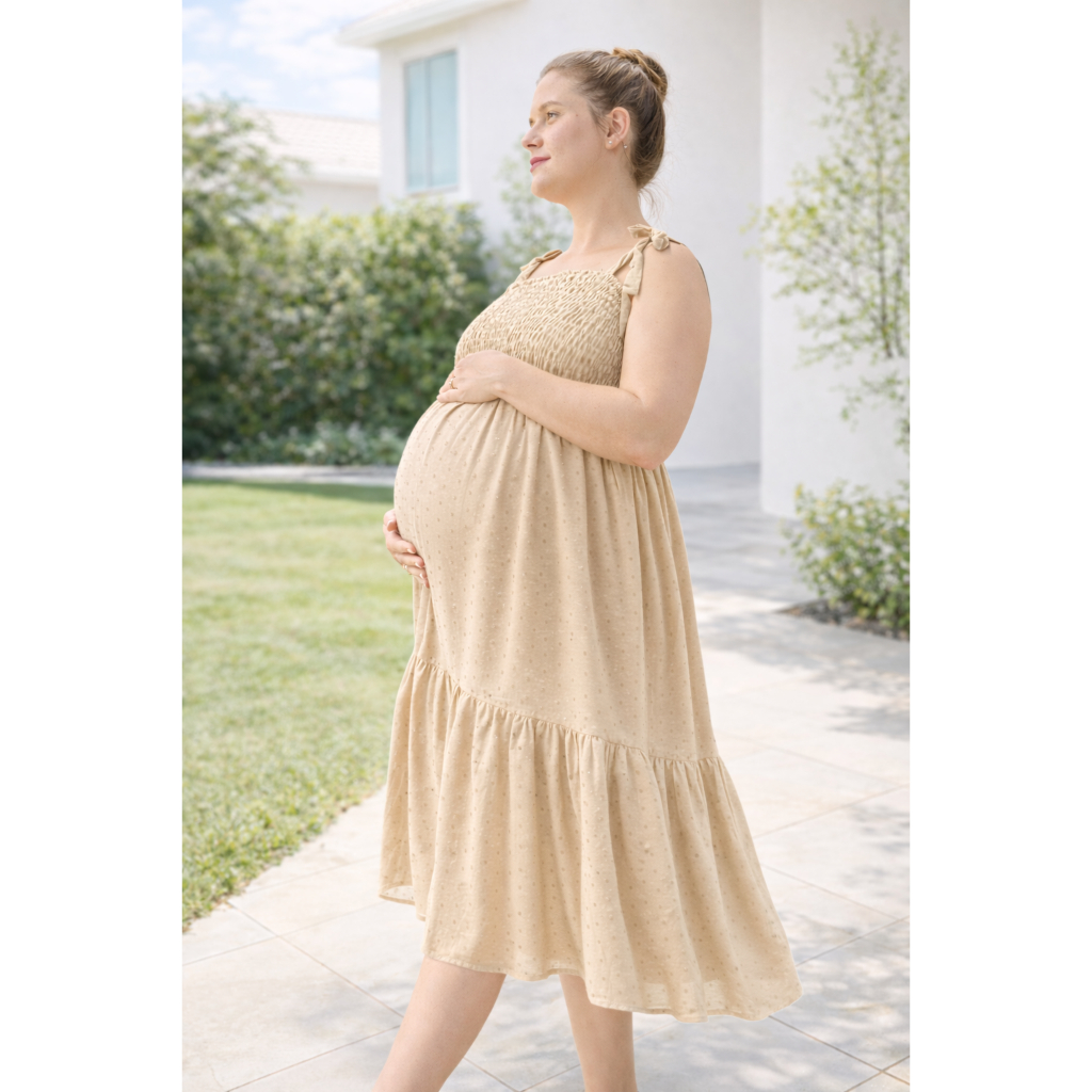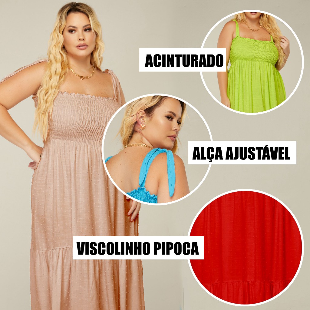 Vestido Midi Plus Size Grávida Gestante Viscolinho Pipoca Alça Ajustável Veste Até O 56