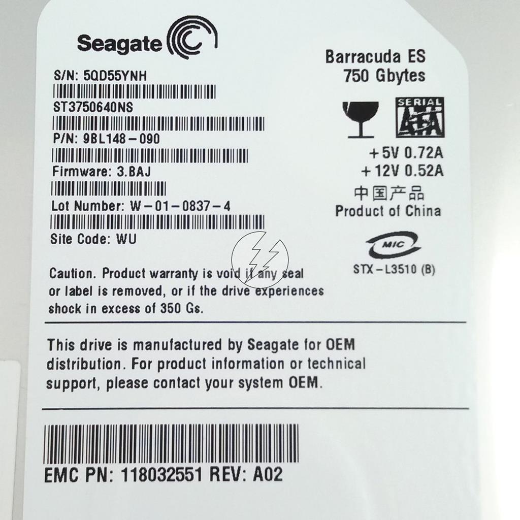 HD 750GB 3,5" SATA 7,2K da Seagate: ST3750640NS, com Gaveta