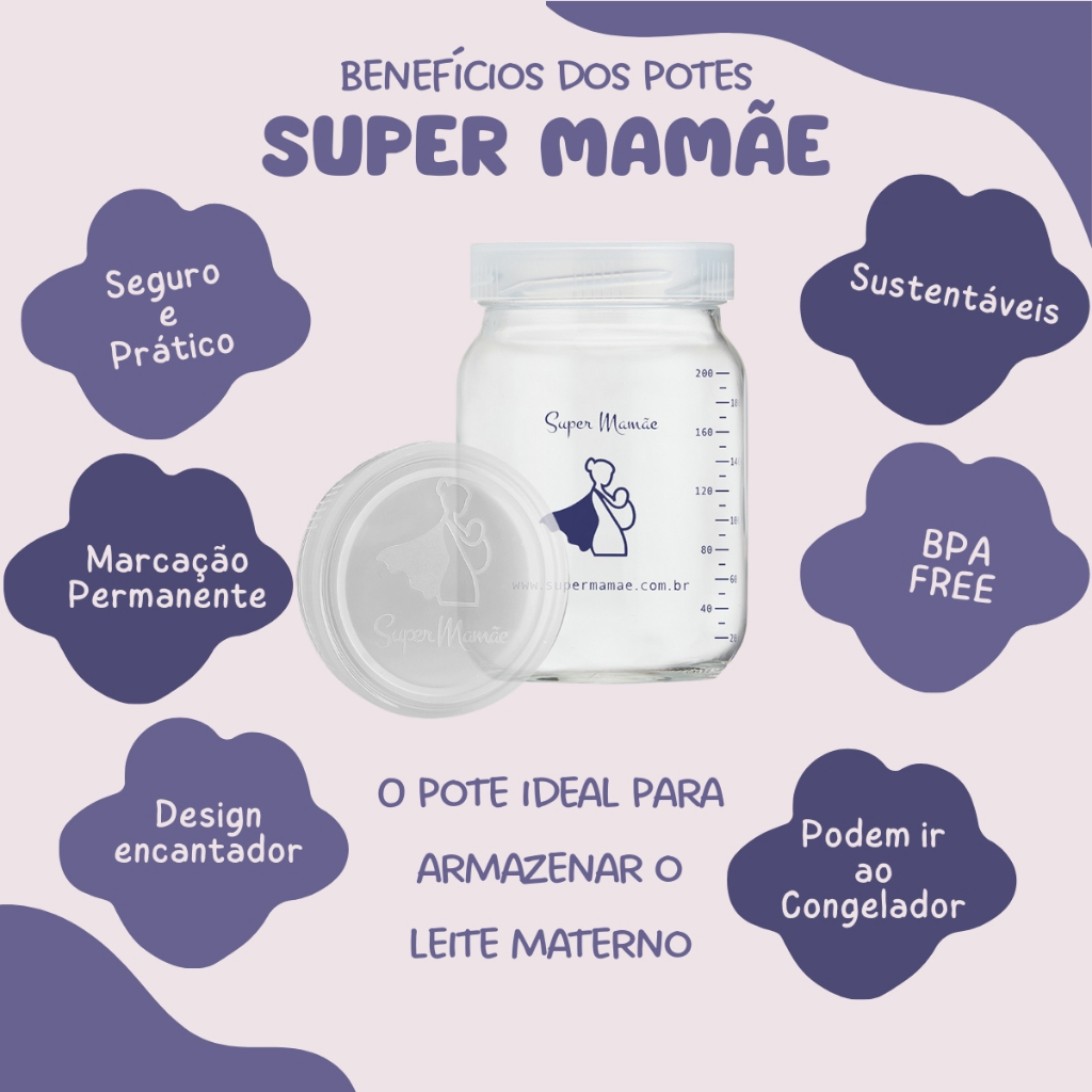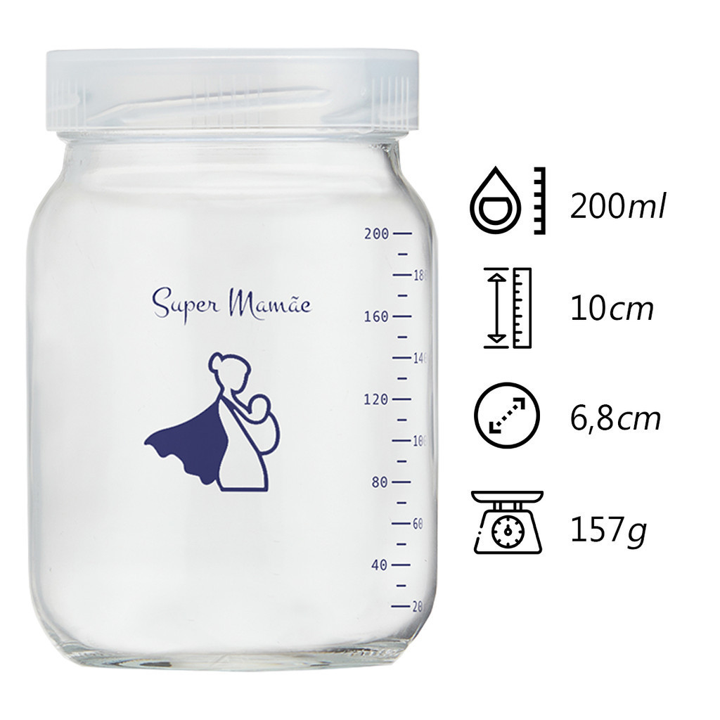 Kit 5 Potes de Vidro 200ml para Armazenar Leite Materno – Tampa Plástica BPA Free