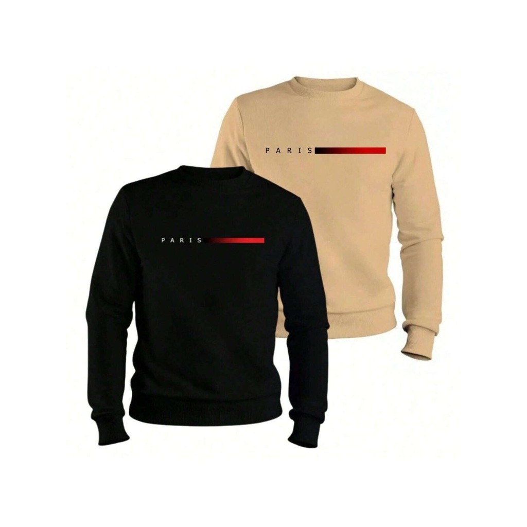 Kit 2 Blusas Moletom Paris Gola Redonda Blusa De Frio Algodão Casaco Feminino Masculino