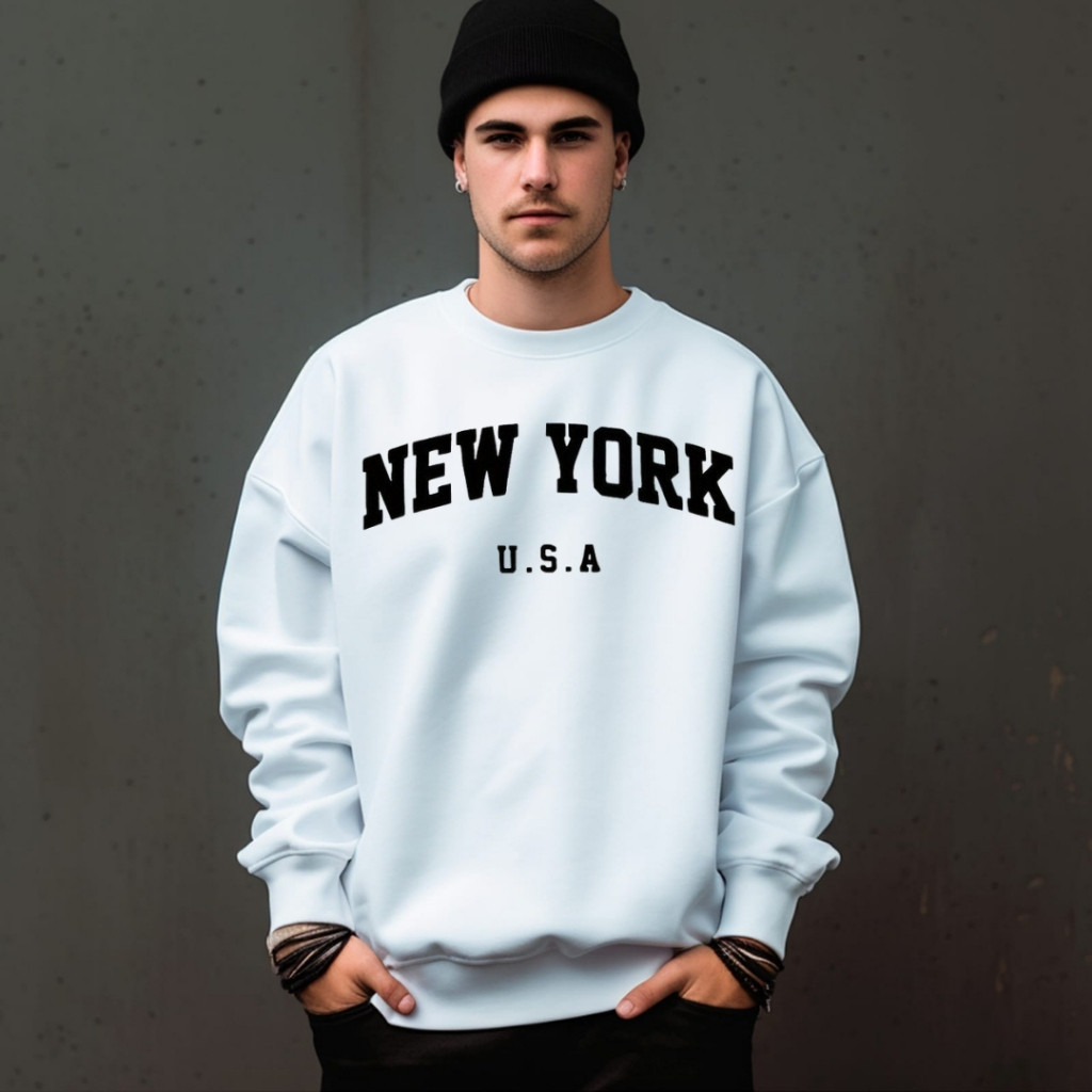 Moletom Blusa De Frio New York Gola Redonda Liso Unissex Blusa De Frio Sem Capuz Gola careca