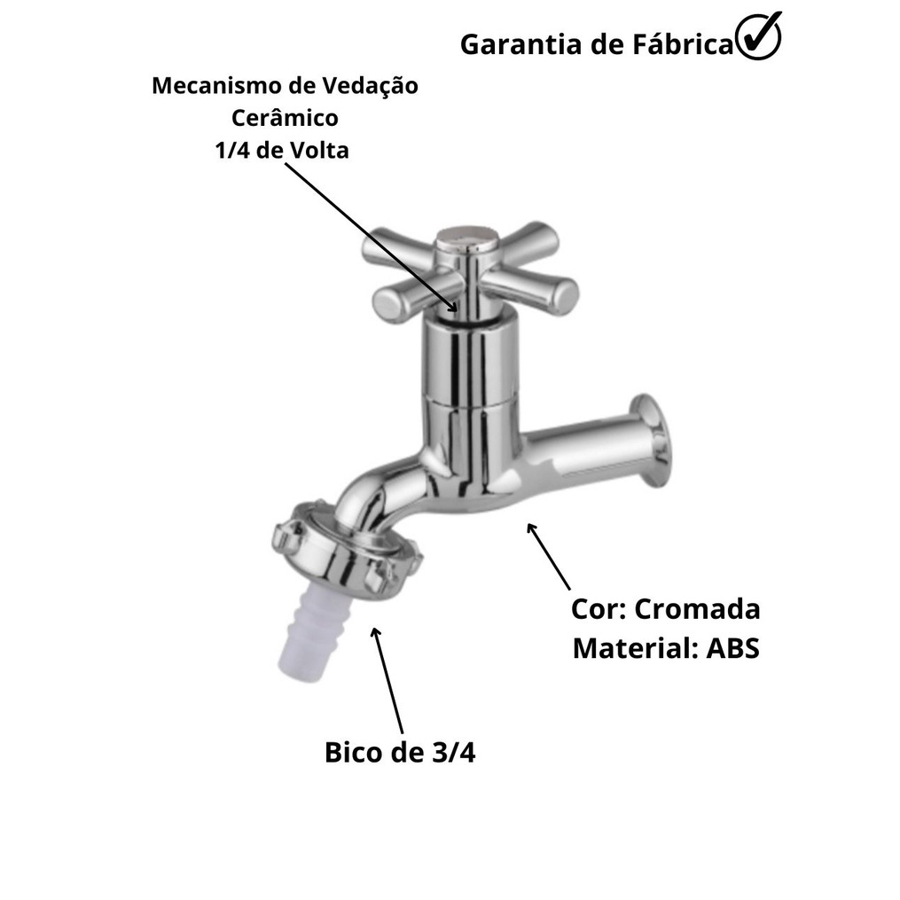 Torneira Para Jardim Ou Lavanderia 1031 Com Bico De 3/4 Na Cor Cromado C31