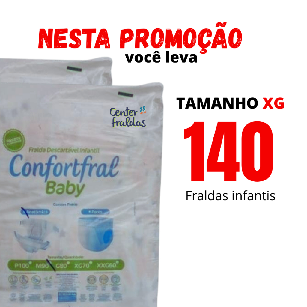 KIT com 2 Pacotão Fraldas infantil Descartáveis Confortfral 2°linha