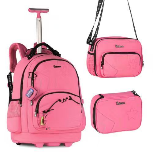 Kit Luluca C Mochila Carro+Estojo Box+Lancheira Térmica Rosa Preta Roxa Juvenil Clio Style Original