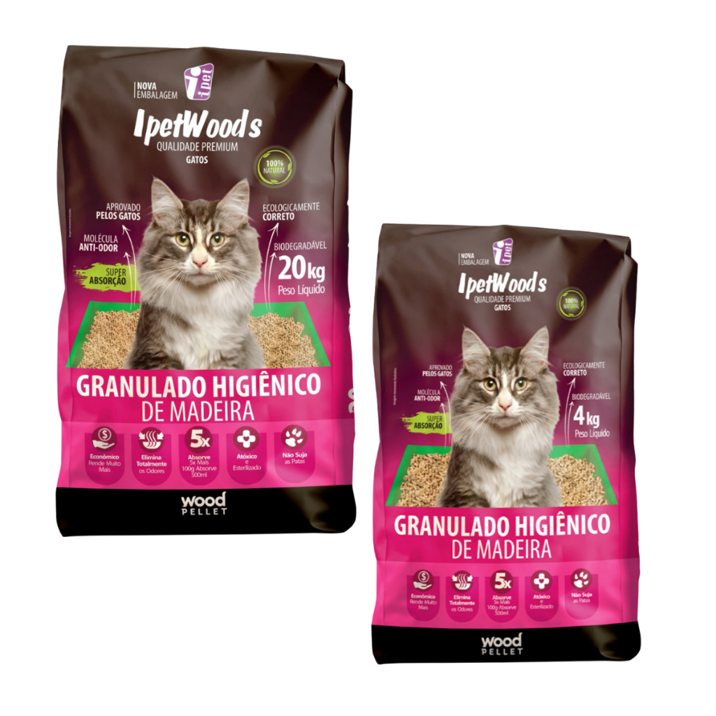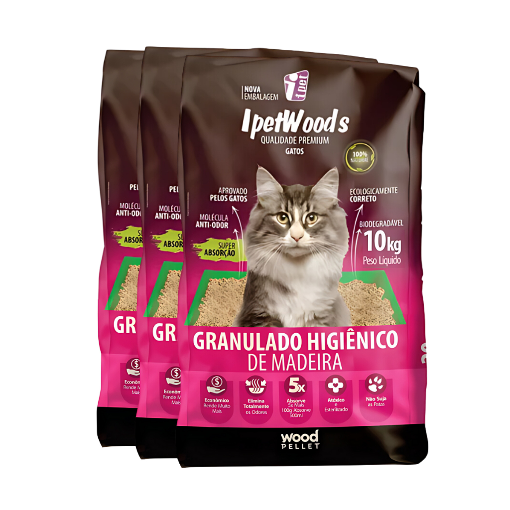 Granulado Higiênico Sustentável Ipet Woods Kits Variados de 10kg a 30kg para o Conforto do Seu Gato