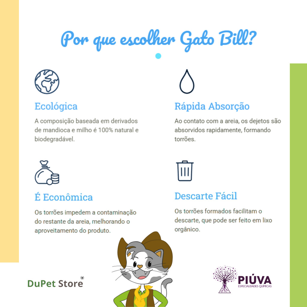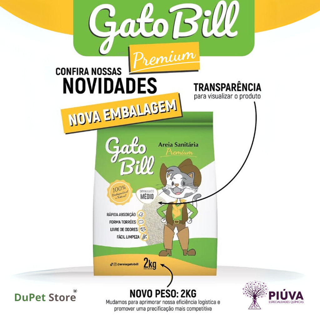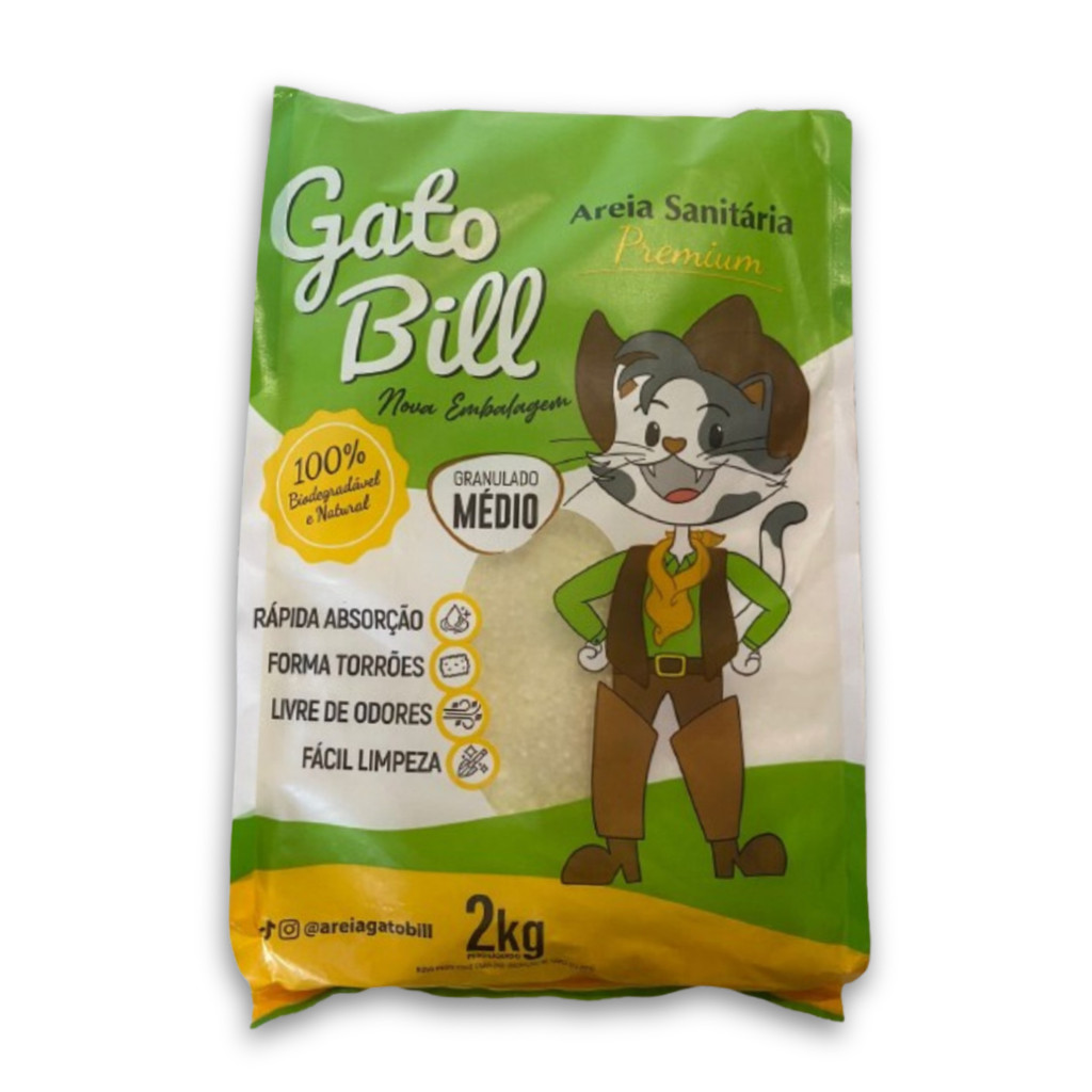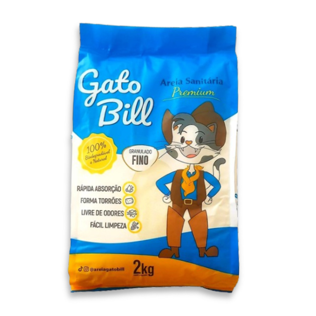 Areia Higiênica Biodegradável Gato Bill - Grãos Finos ou Grãos Médios (2kg)