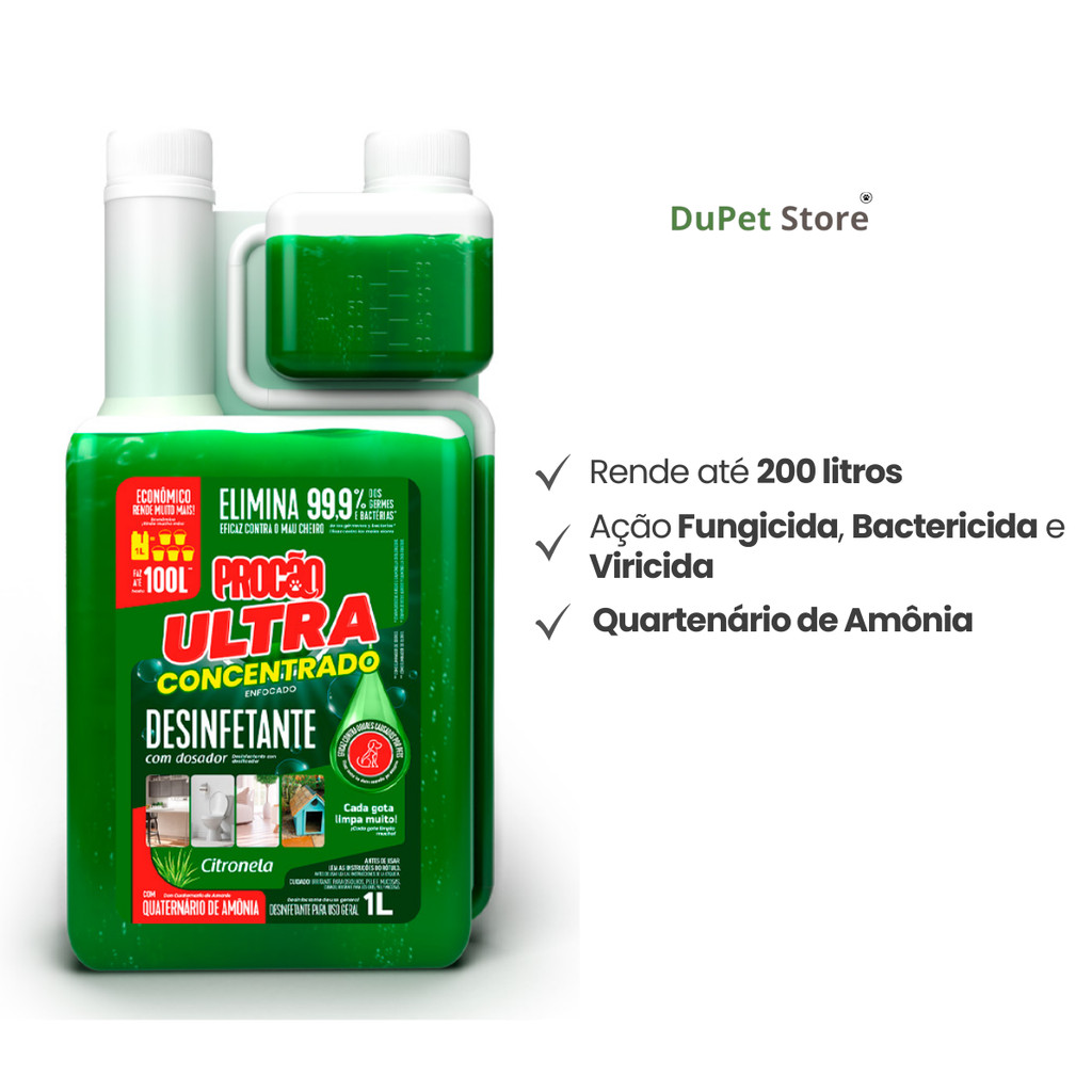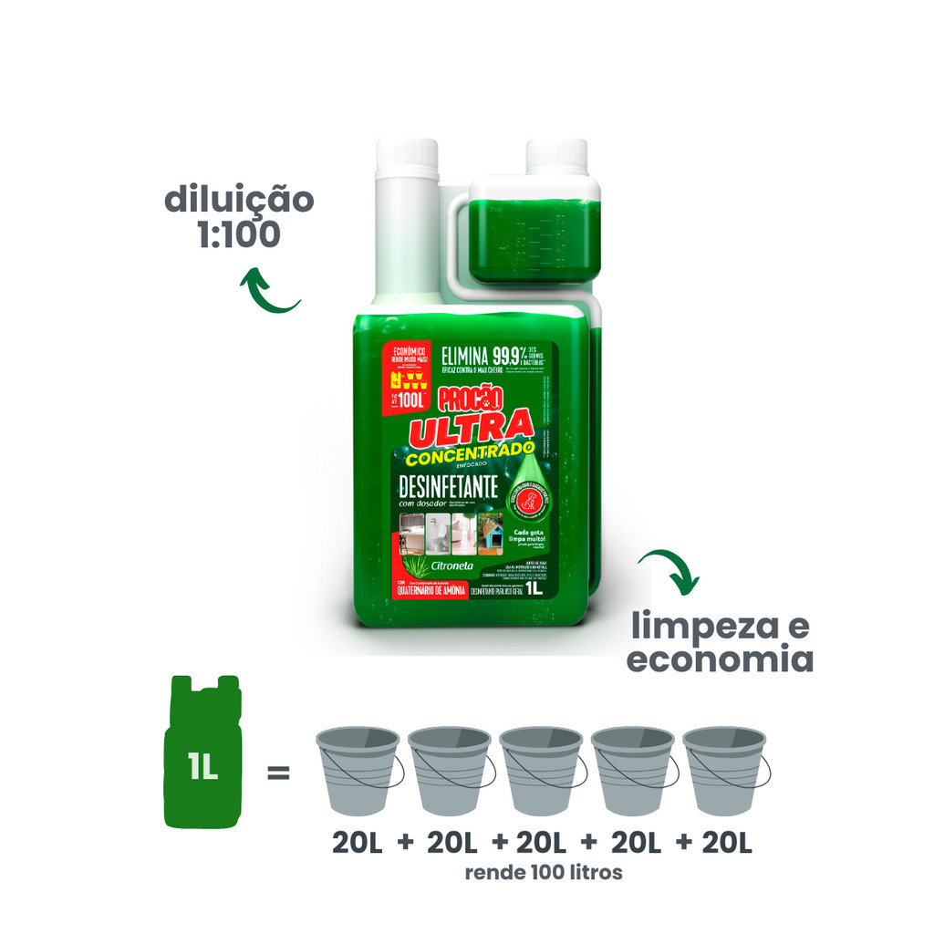 Kit C/ 2 Desinfetantes Ultra Concentrado Citronela Procão 1L - Total de 2L no Kit