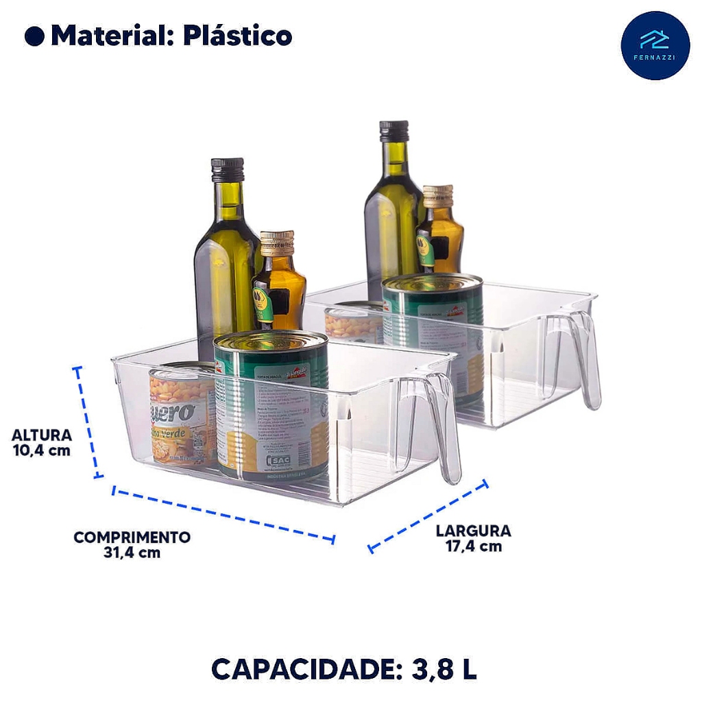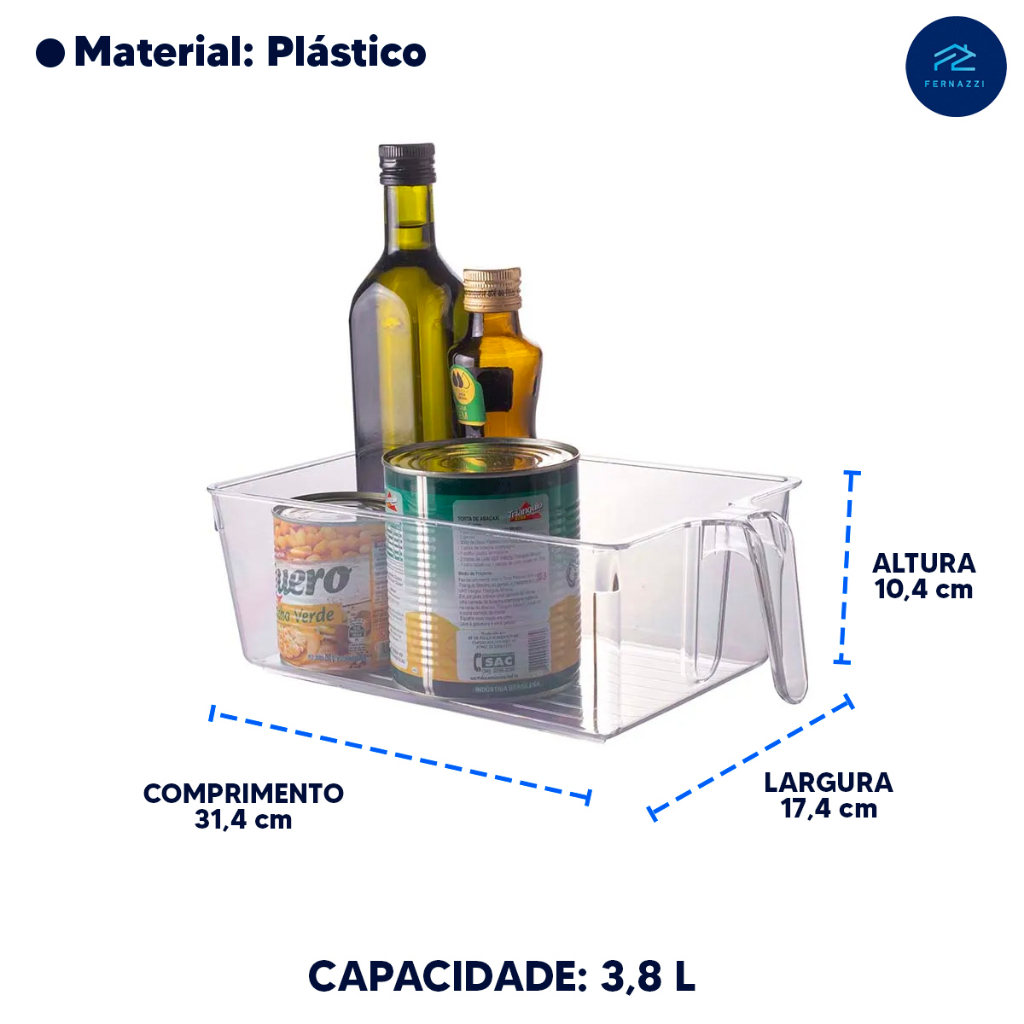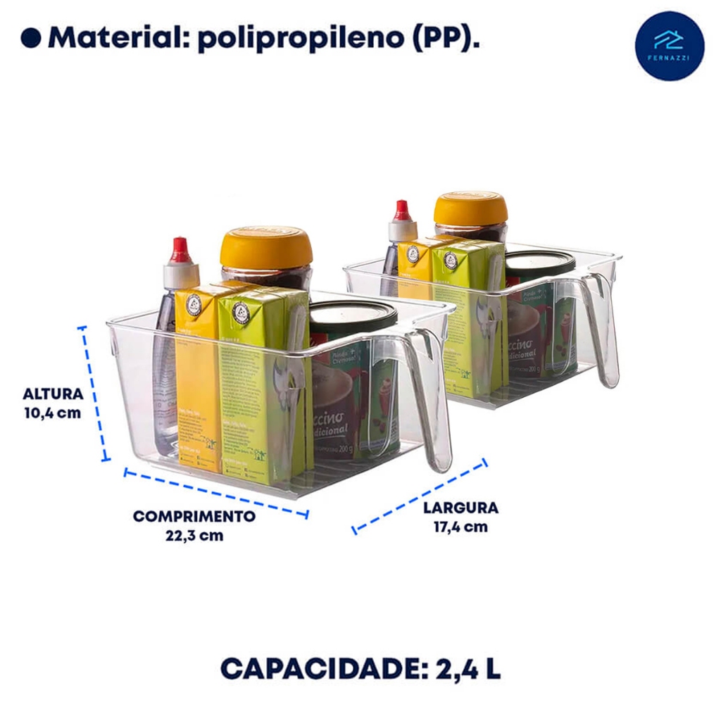 Organizador de Geladeira Com Alça Mantimentos Armário Cozinha