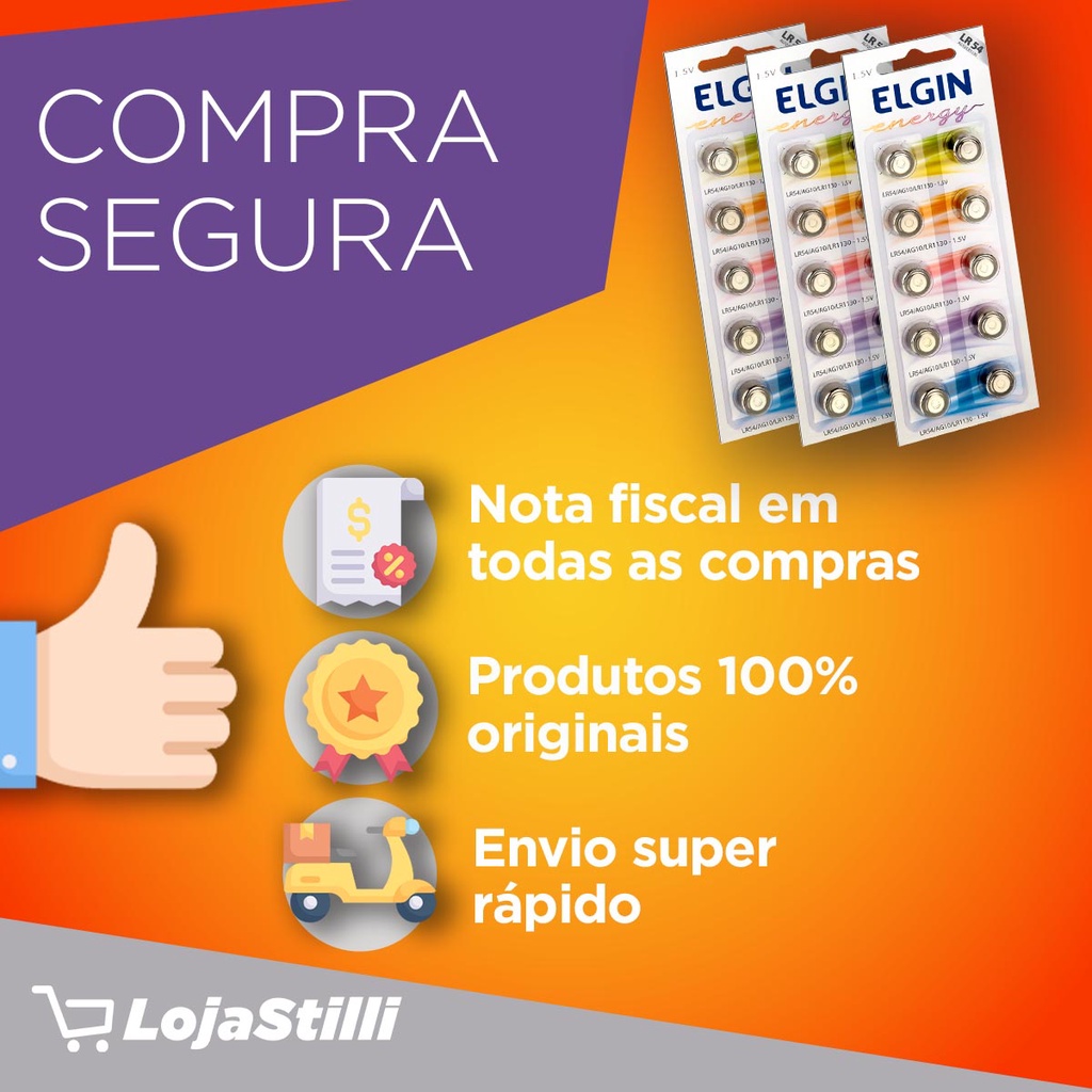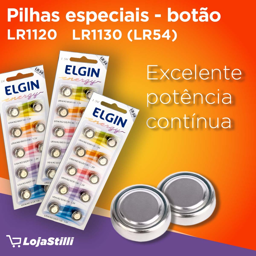 Pilha Alcalina LR1130 Elgin Bateria LR54 AG10 kit 20 unidades