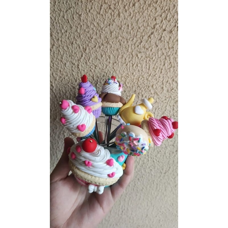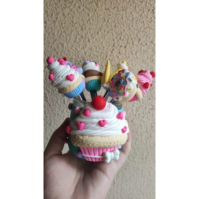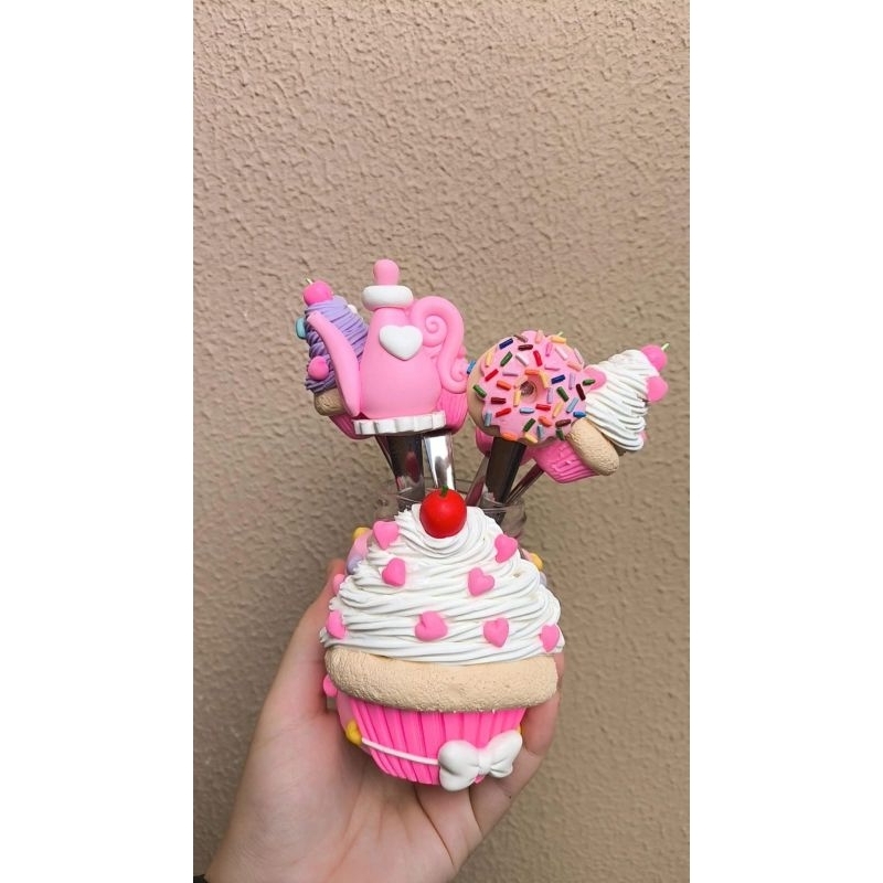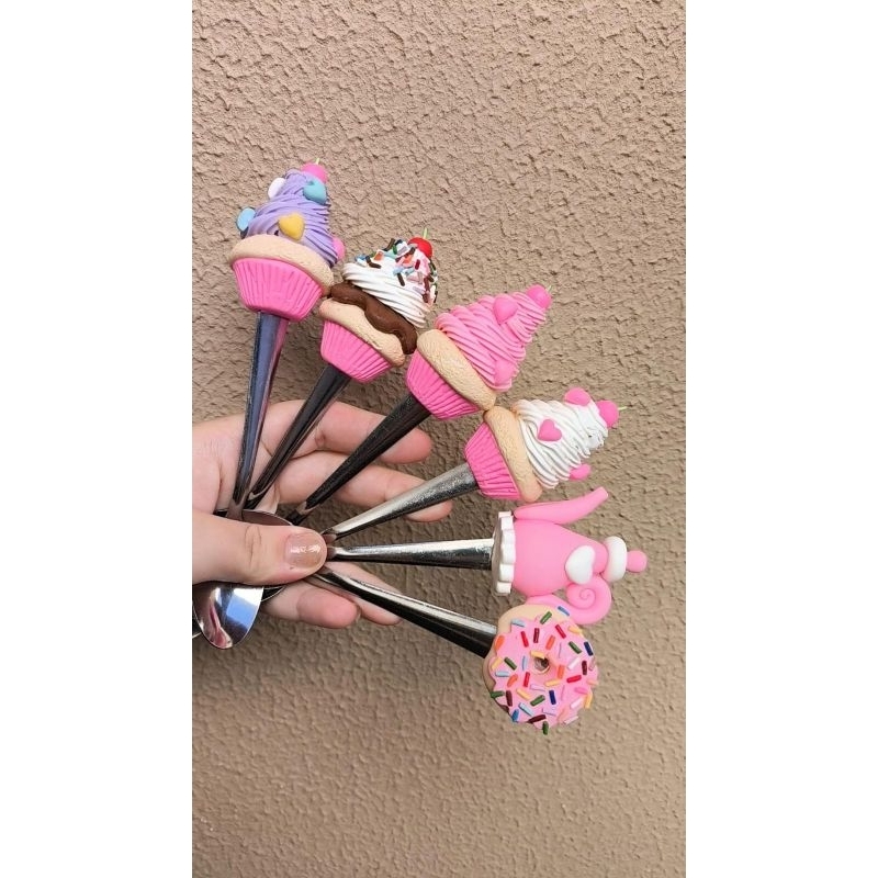 Combo Pote + 4 colheres Decoradas em Biscuit Cantinho do Café