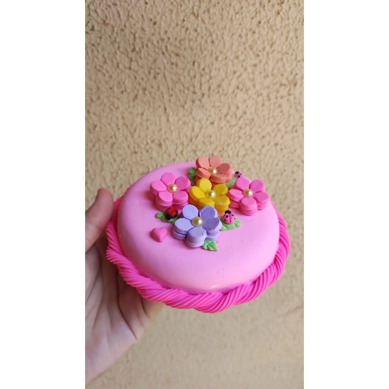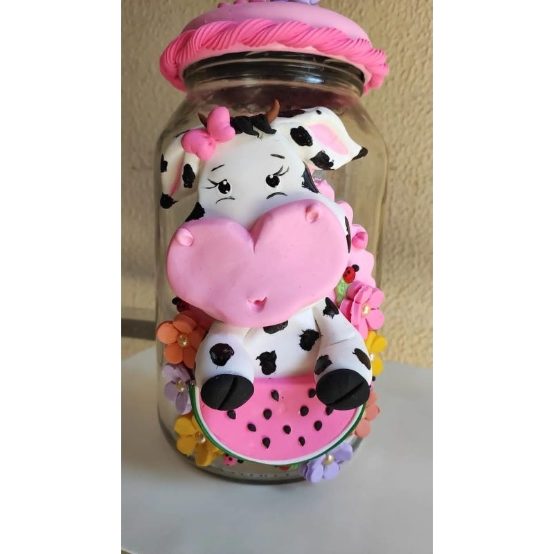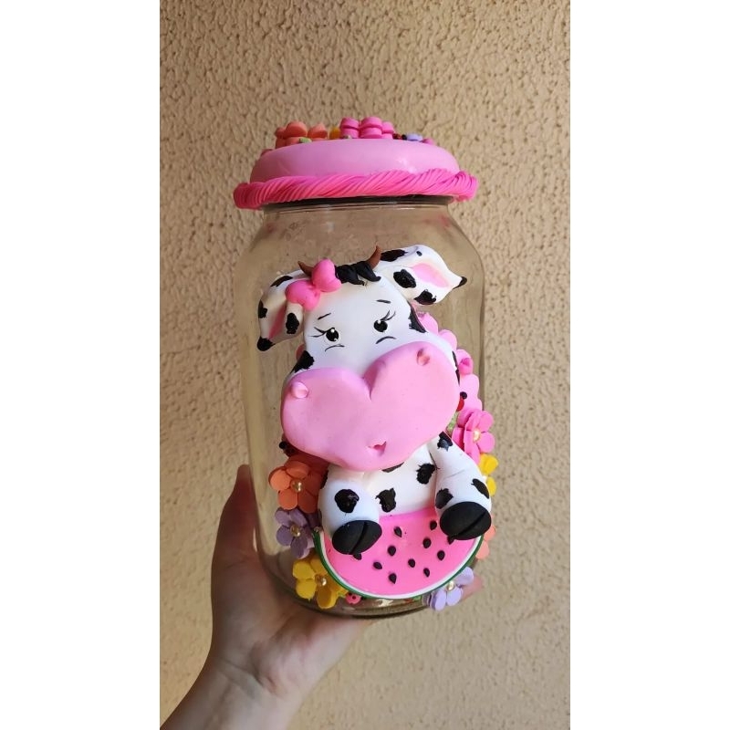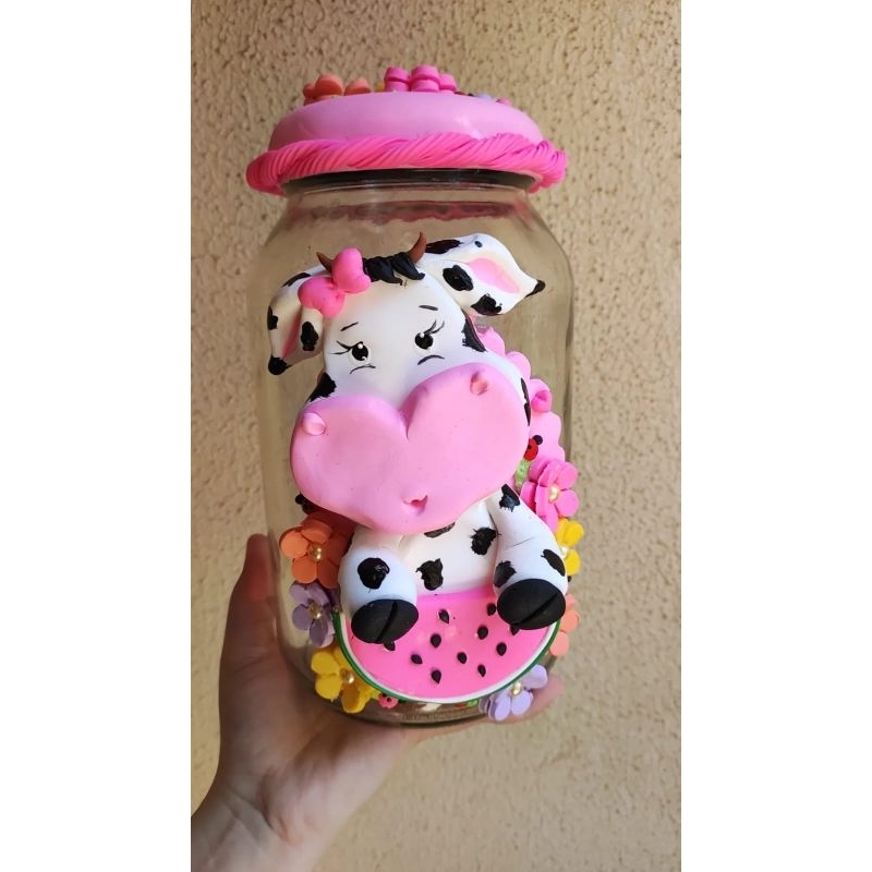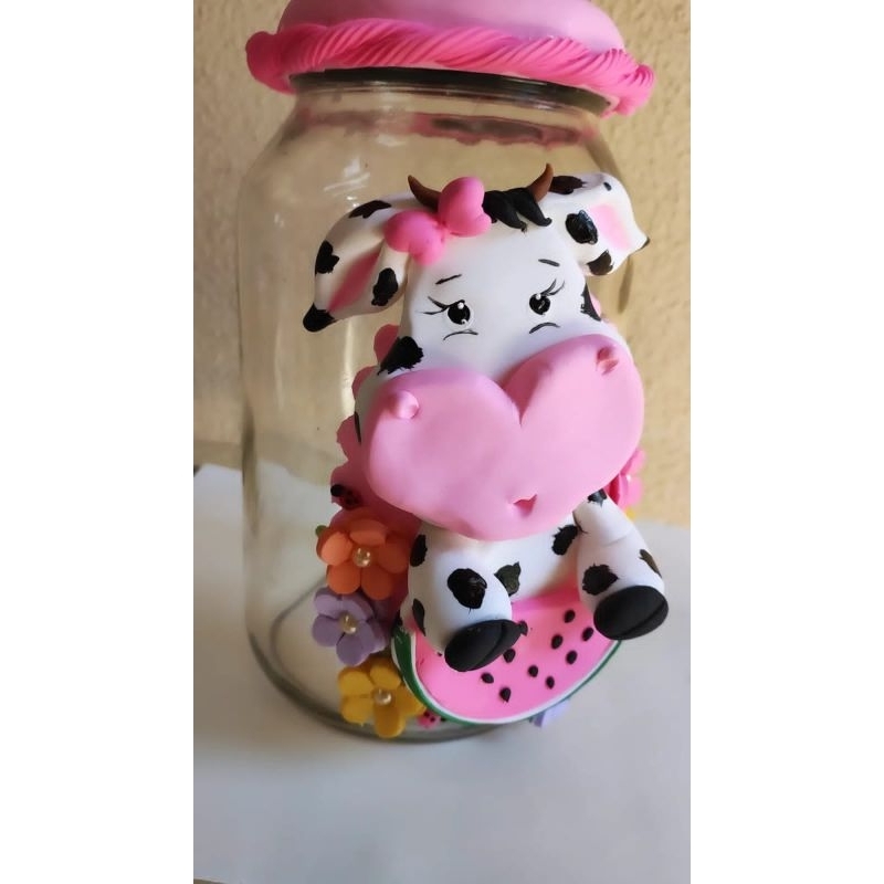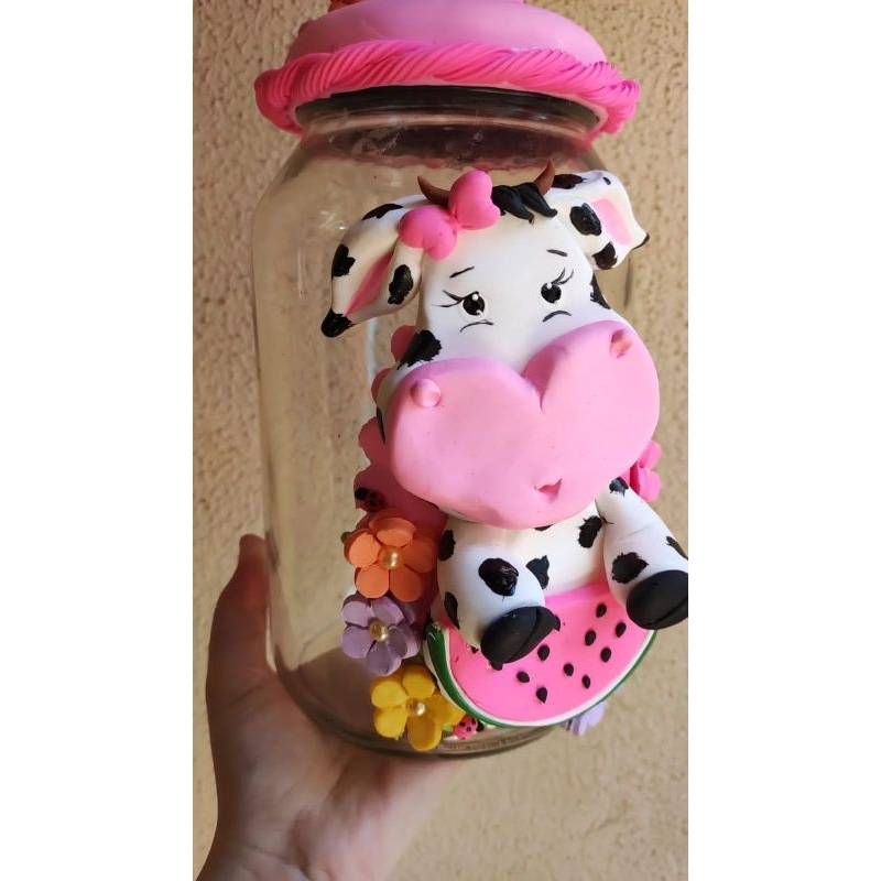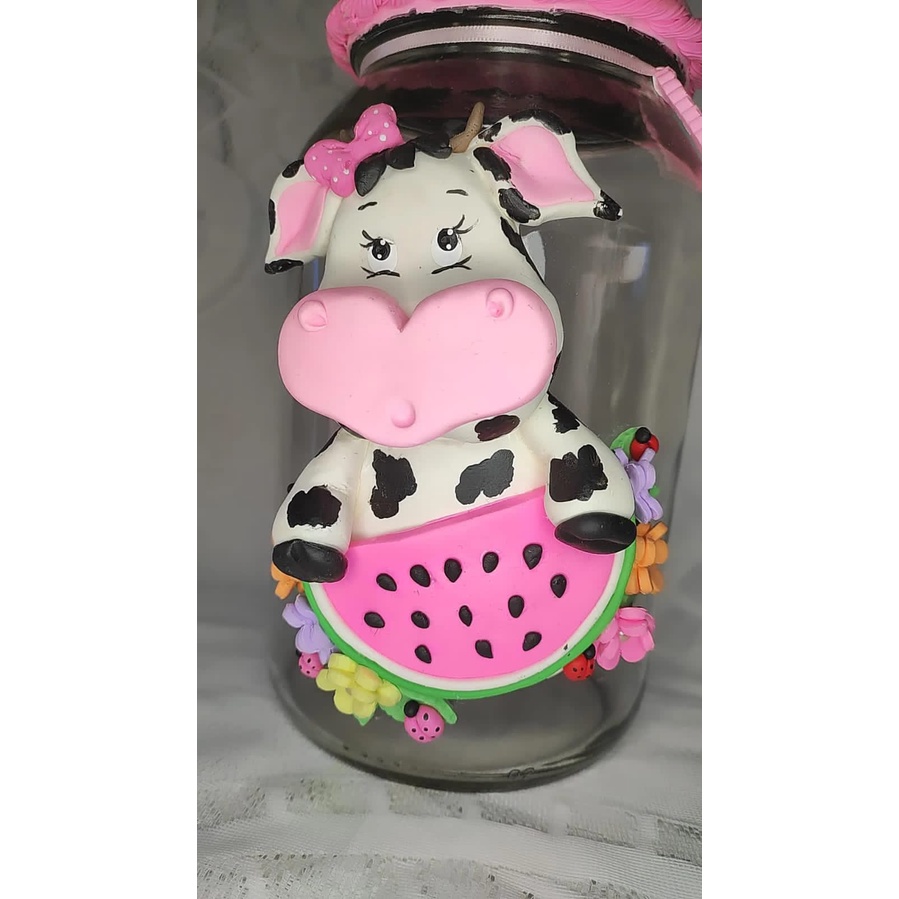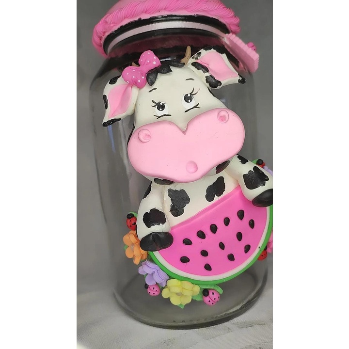 Pote Grande Bichinhos da Fazenda Vaquinha Decorado em Biscuit