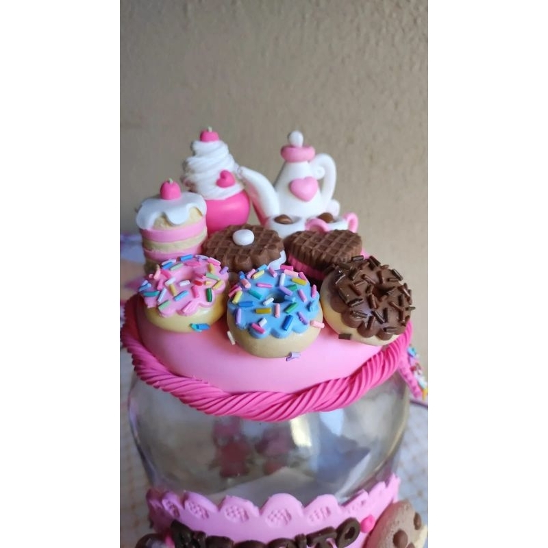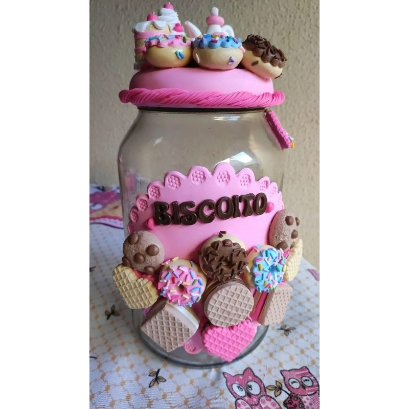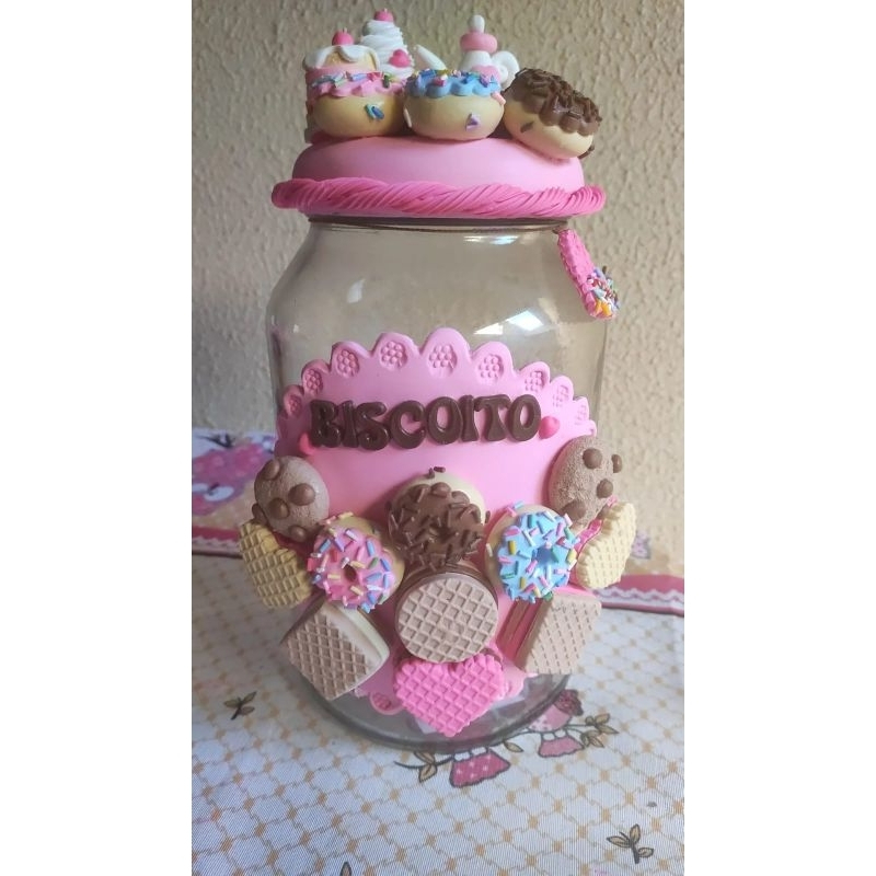 Pote de Biscoitos Decorado em Biscuit Cantinho do Café