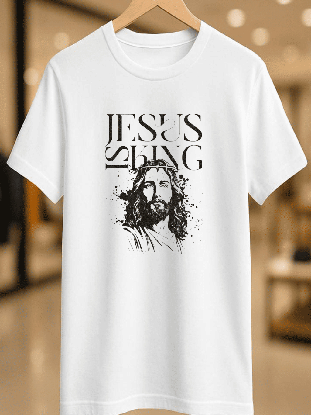Camisa Camiseta Gospel Jesus é Rei Evangélica Religiosa Cristã Frase Unissex Poliéster