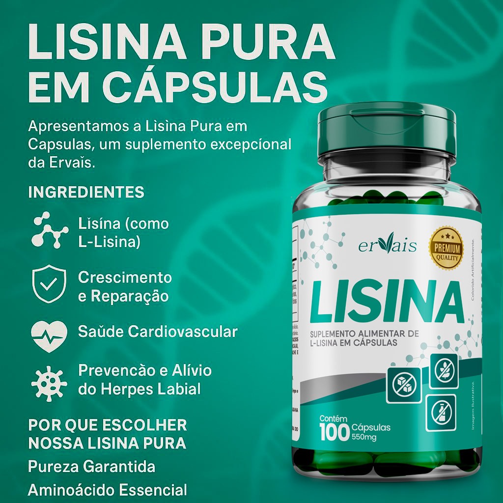 Lisina Cloridrato 100 cápsulas porção 1000mg - NOVA EMBALAGEM