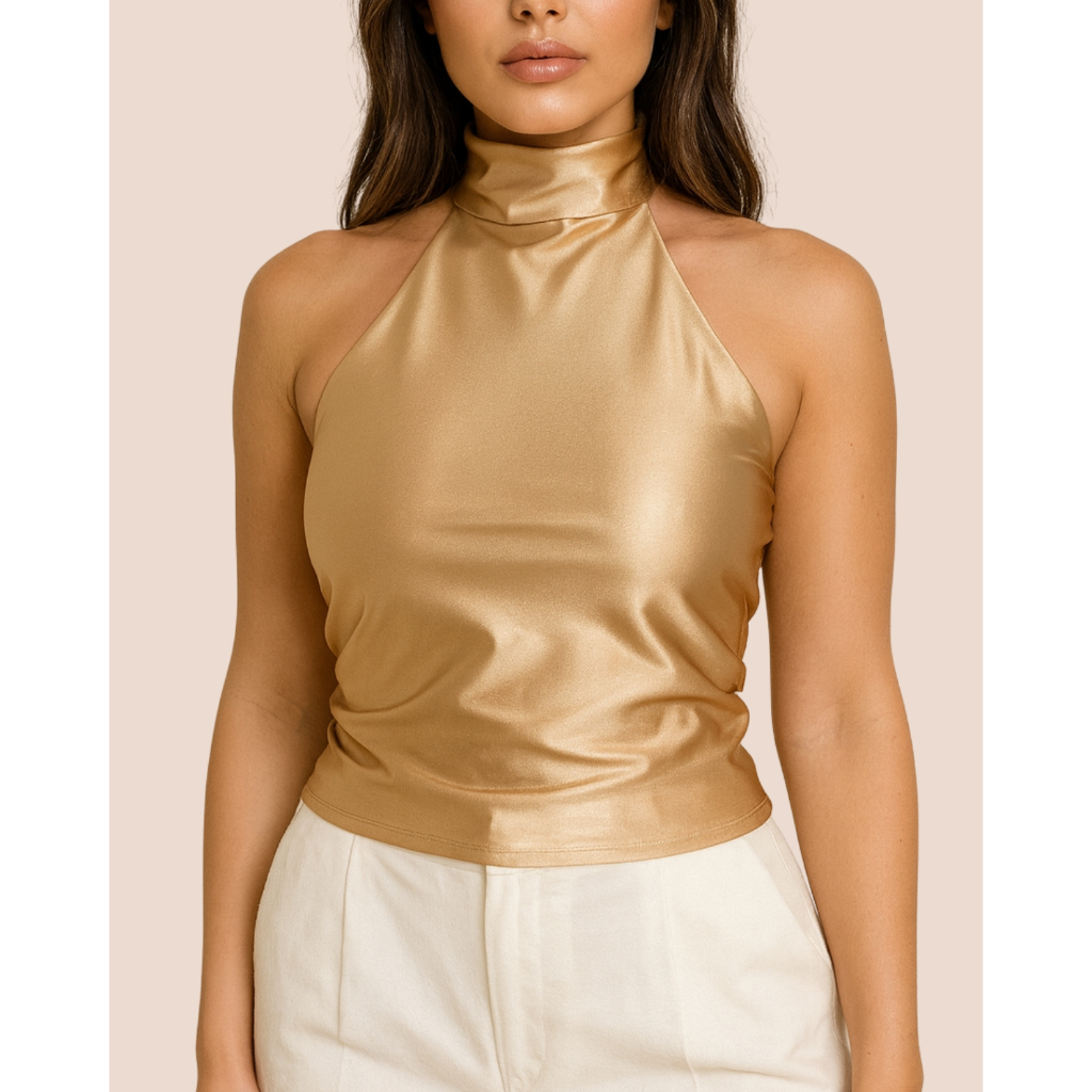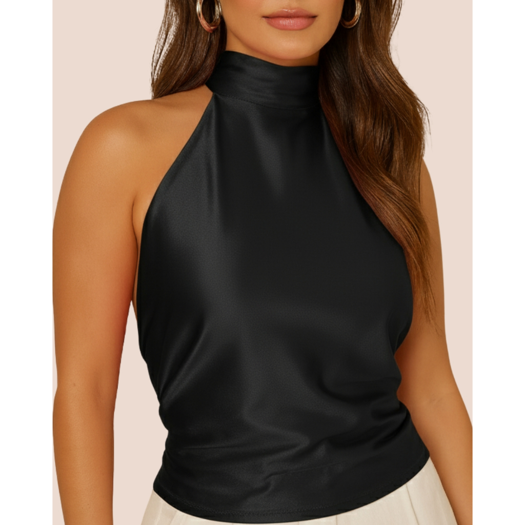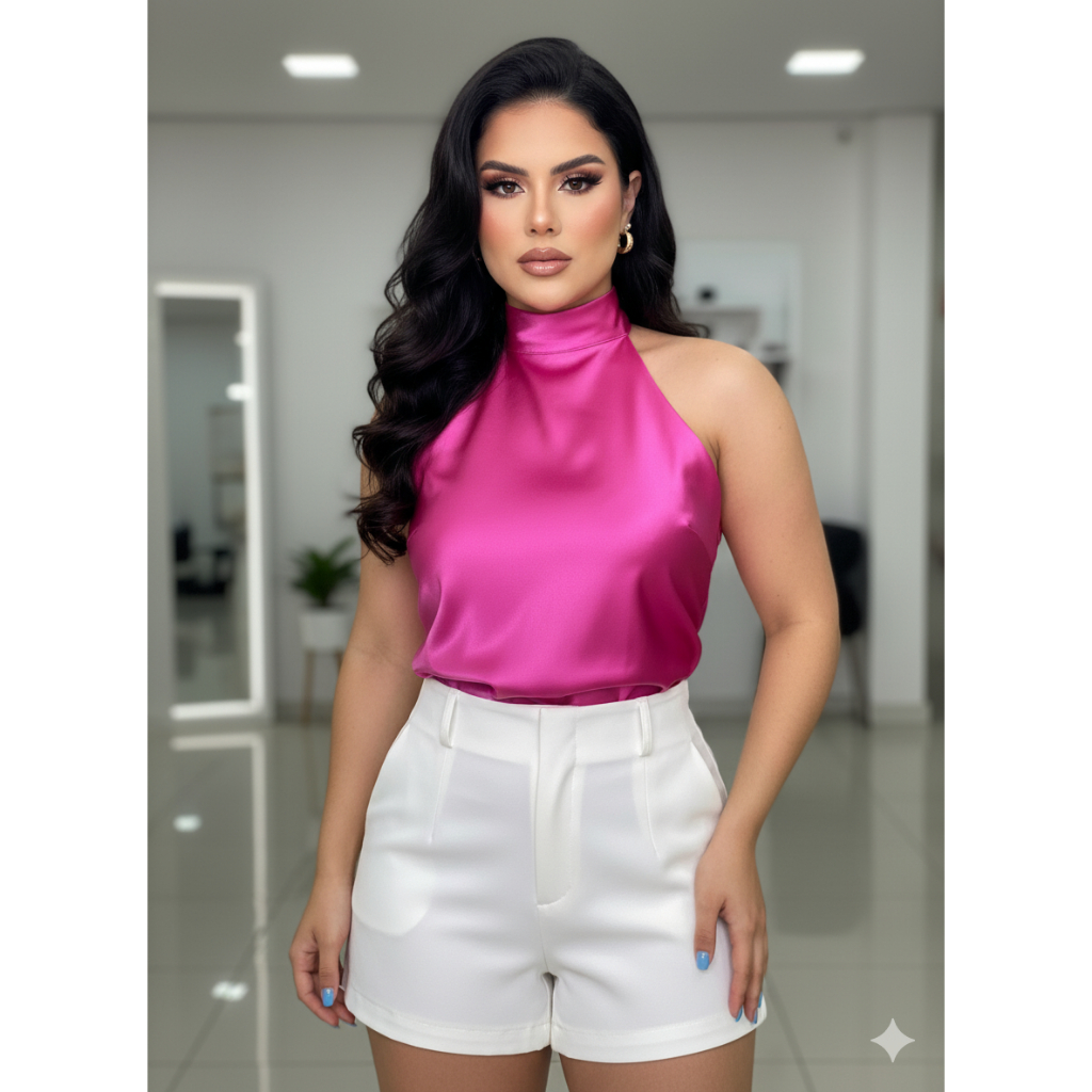 Blusa Feminina Frente Única Gola Alta Tecido em Cetim Com Elastano Festas Elegante e Sofisticada