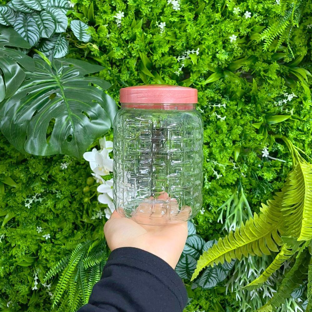 Kit 02 Pote De Plástico Cristal Tampa Matte Rose 1000ml