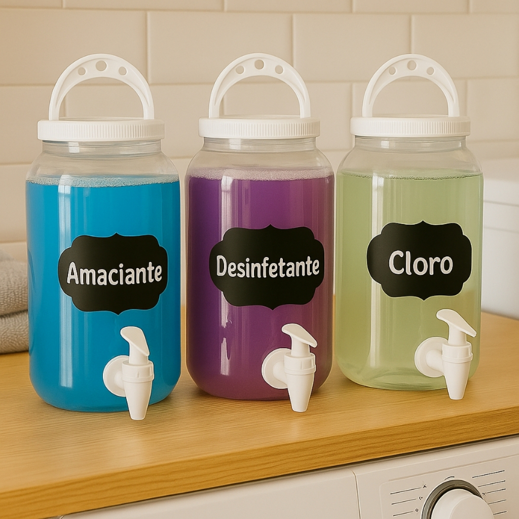 Kit 3 Dispenser Amaciante Produtos de Limpeza 3,6Lts + Porta Sabão 3,6L Lavanderia