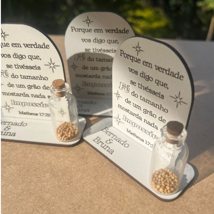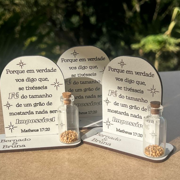 10 Lembrancinhas Grão de Mostarda Casamento Festa Encontros Confraternização em MDF Branco Personalizado