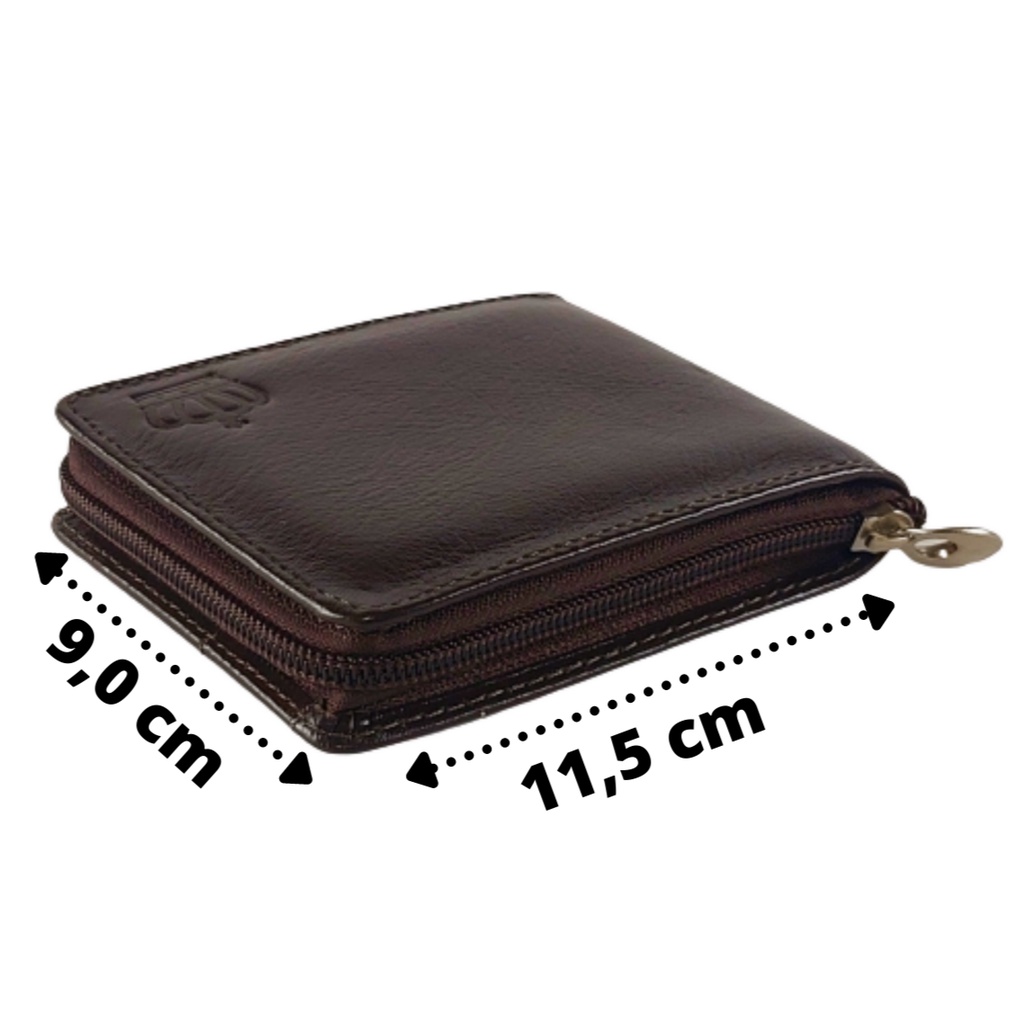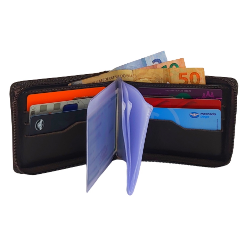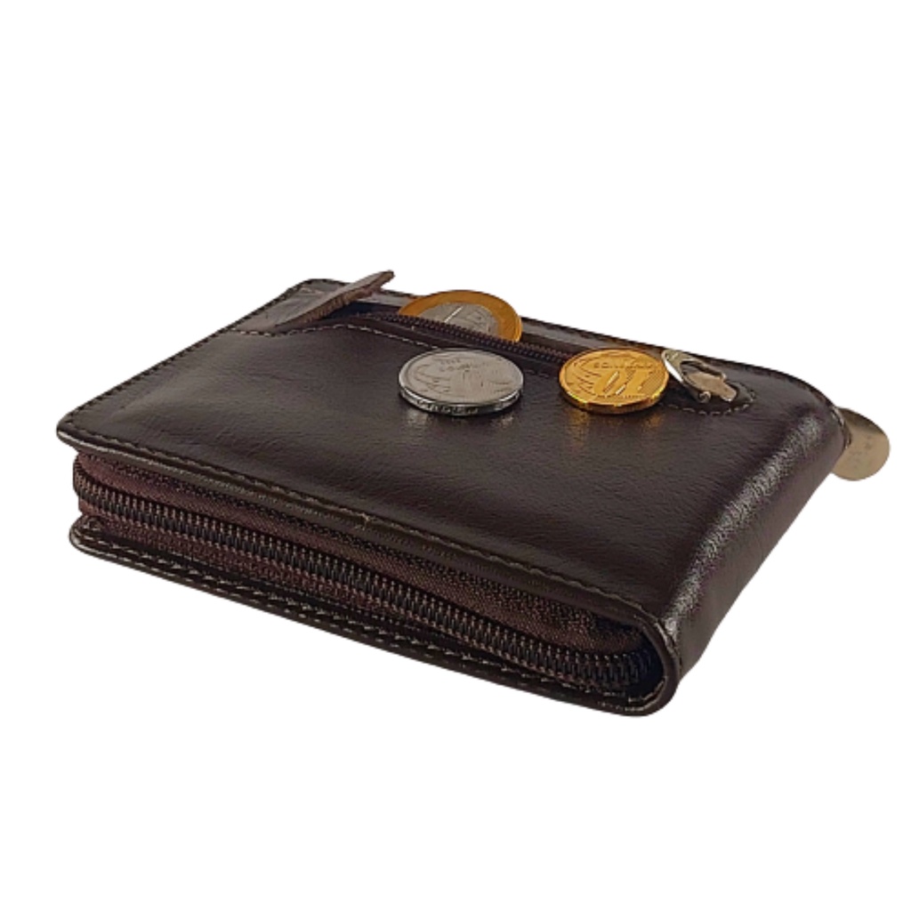 Carteira Masculina De couro Ziper Porta Cartão Moedas RG CNH Marrom