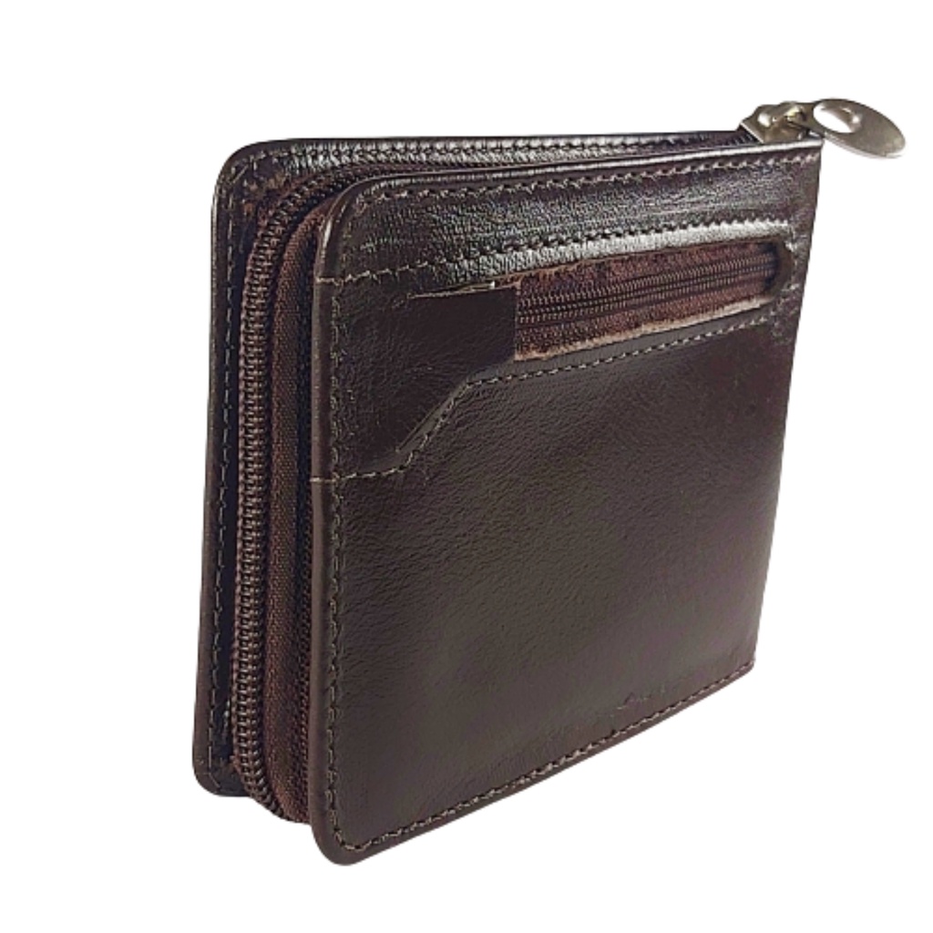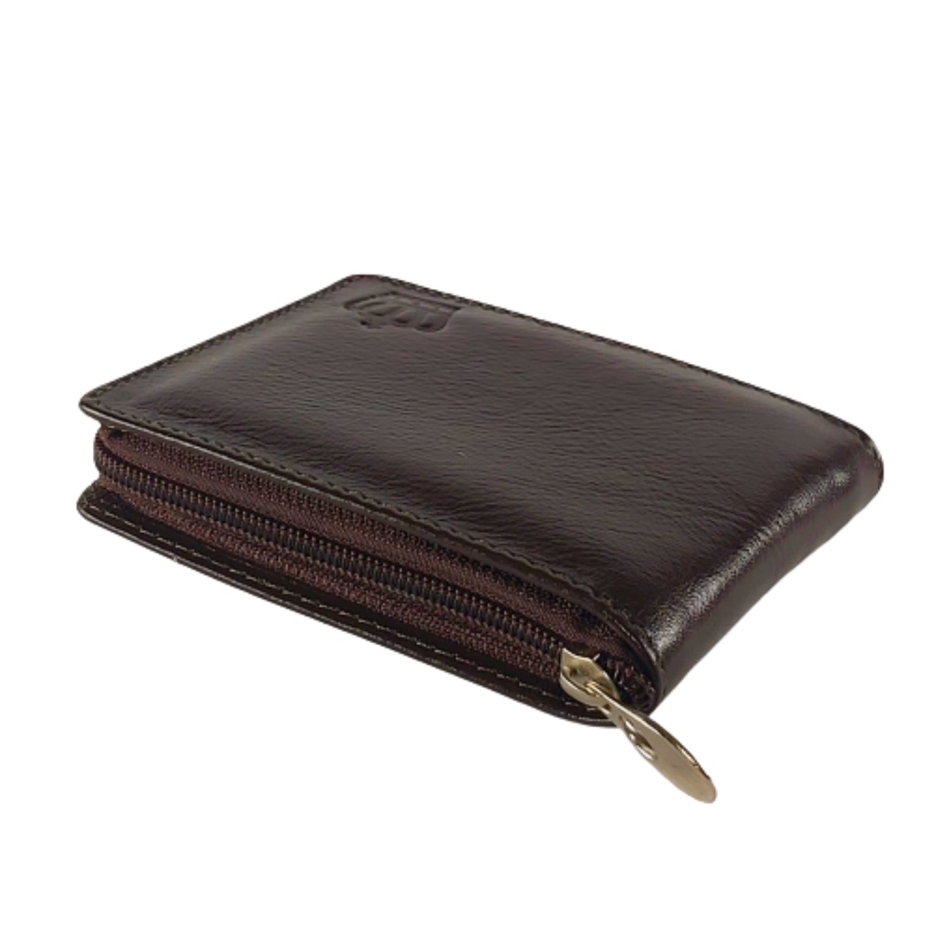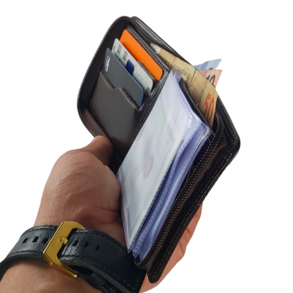 Carteira Masculina De couro Ziper Porta Cartão Moedas RG CNH Marrom