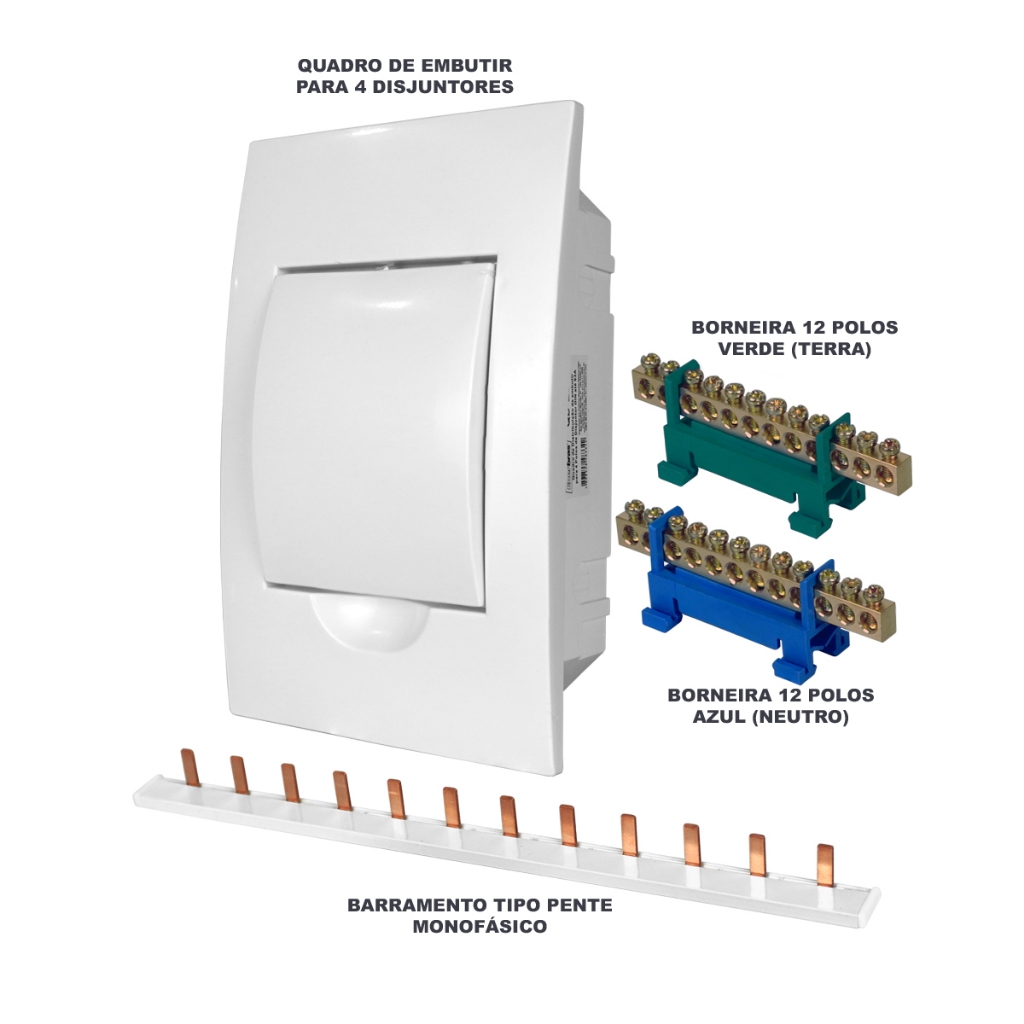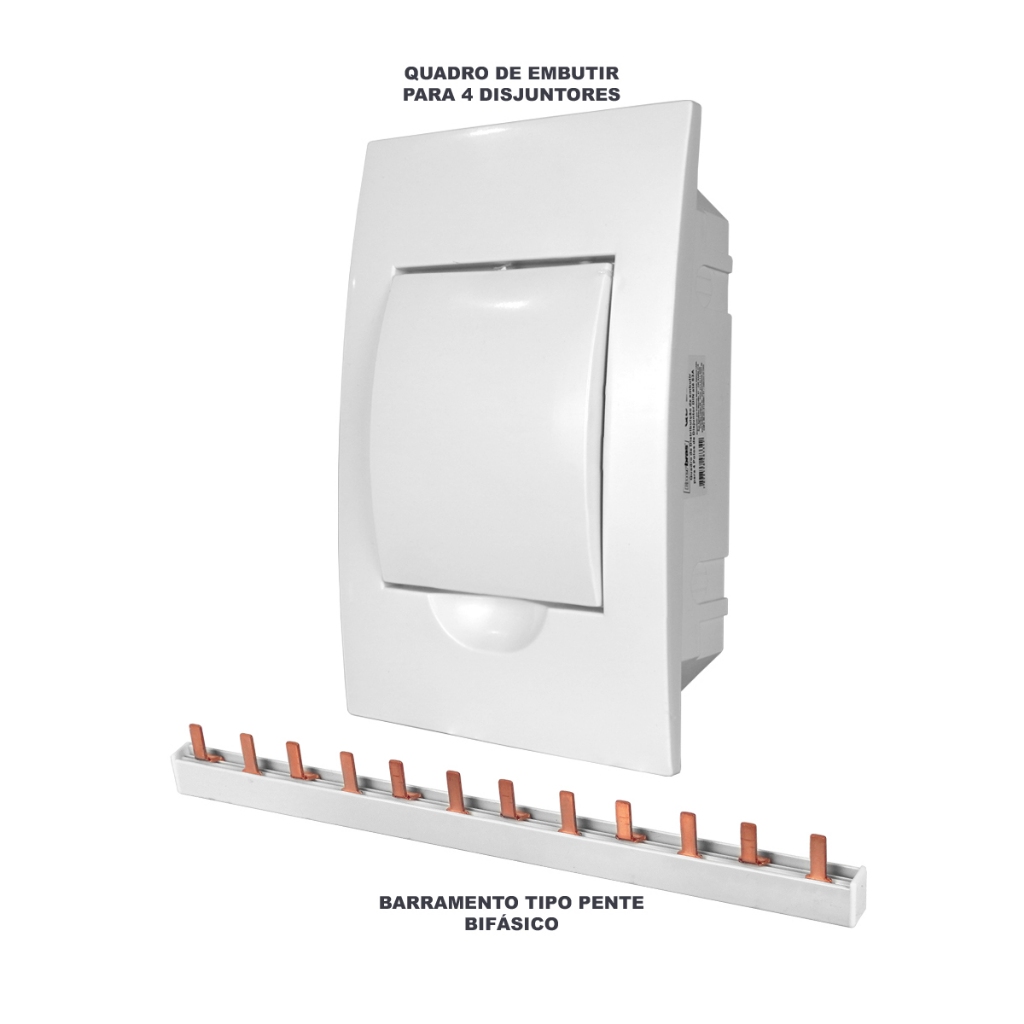 Kit Quadro Caixa de Embutir para 4 disjuntores com Barramentos