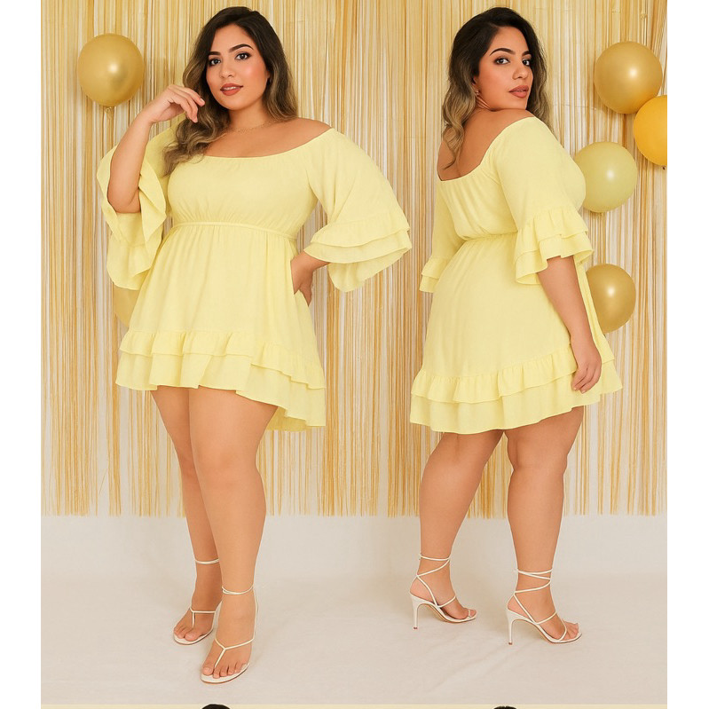 Vestidos Plus Size Ciganinha Ombro a Ombro Tomara Que Caia Blogueira G1 G2 G3 / M G GG ENTREGA HOJE
