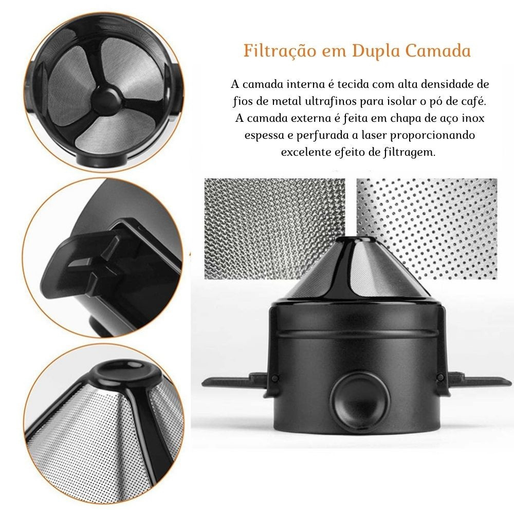 Coador Portátil de Café Mini Filtro De Cafe Aço Inox Reutilizavel