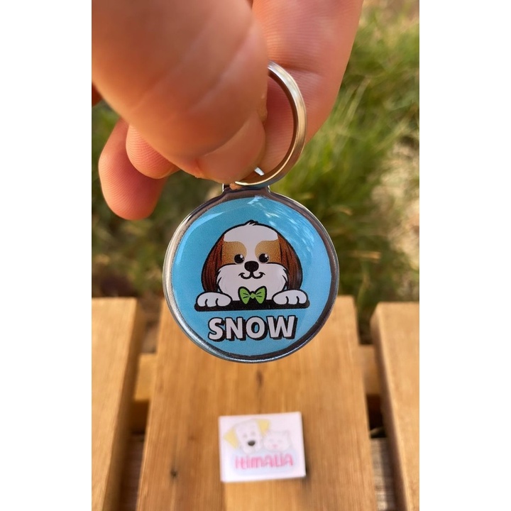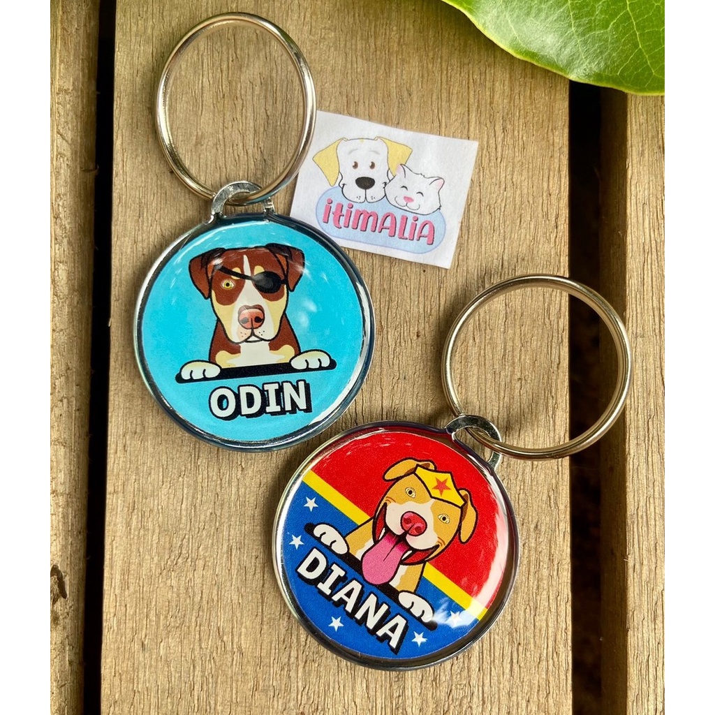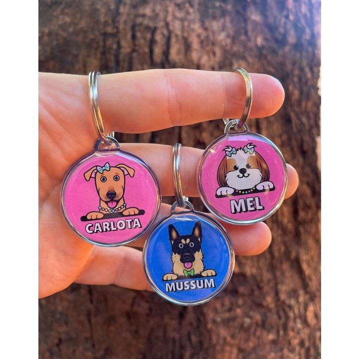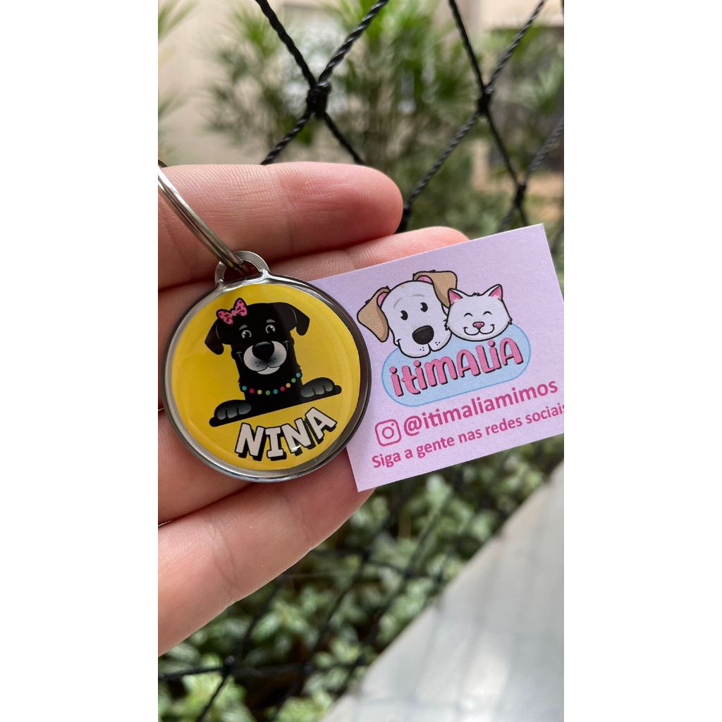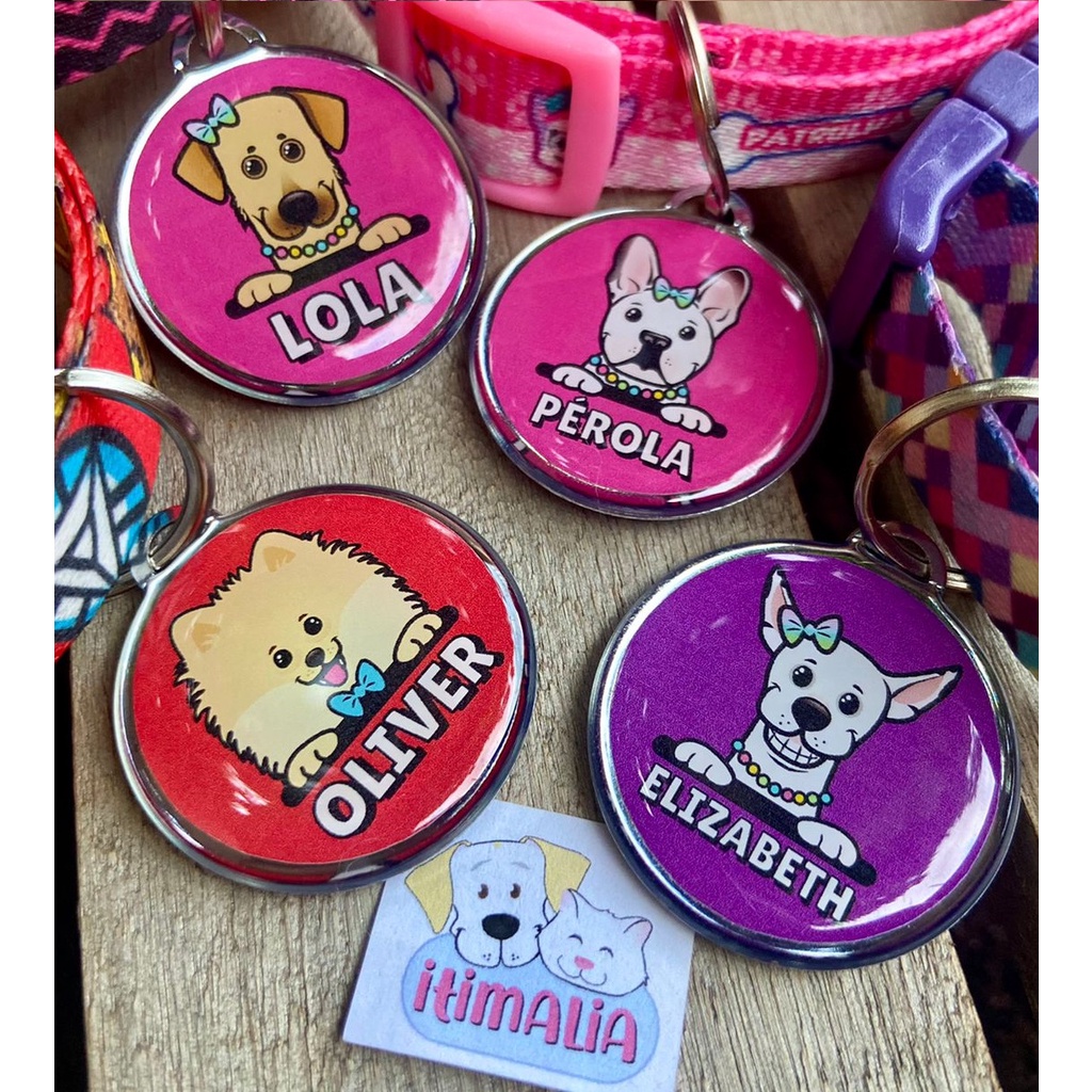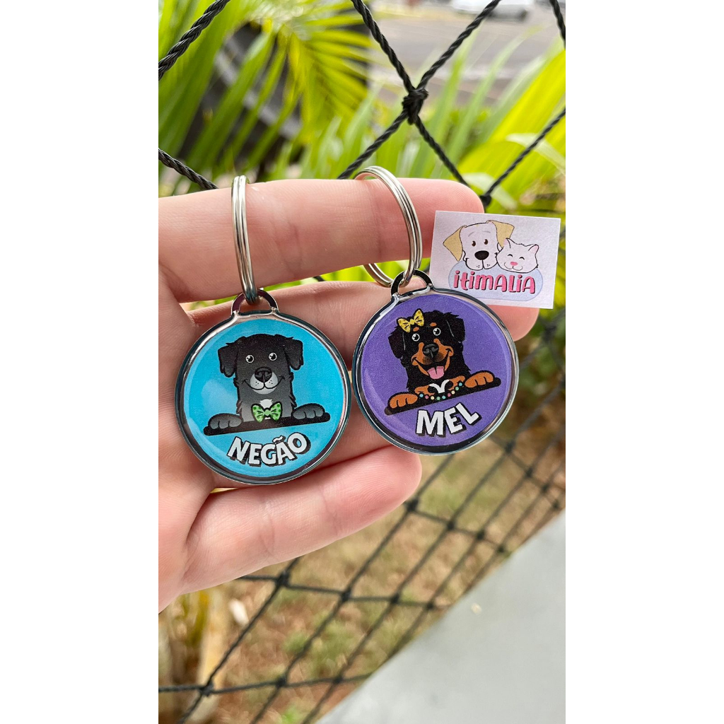 Plaquinha de Identificação Pet - TAG MEDALHA - Com Desenho do Seu Cachorro - INFORMAR A COR NO CHAT