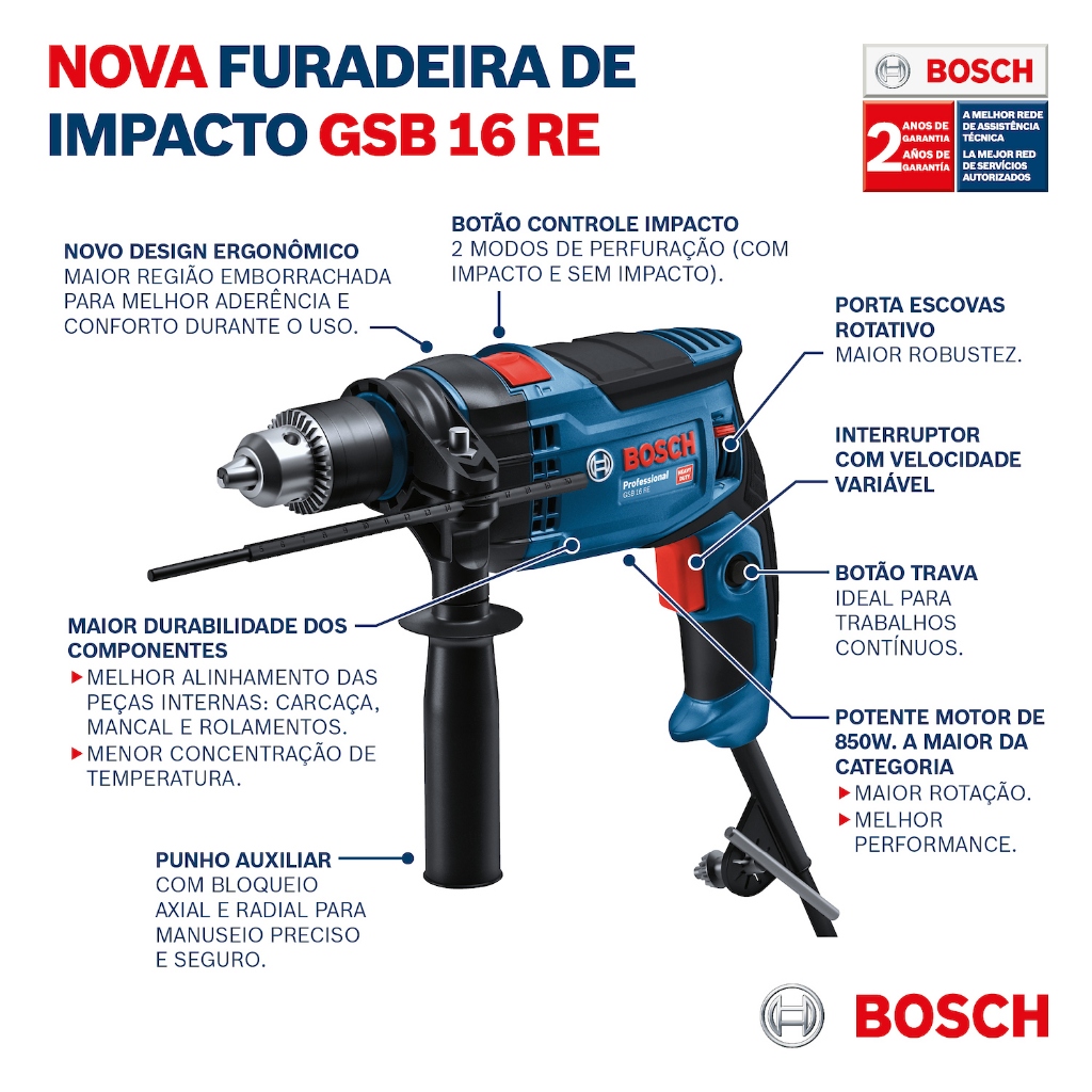 Kit Furadeira Impacto Bosch GSB 16 RE 110V 850w + X-Line 33 Pcs