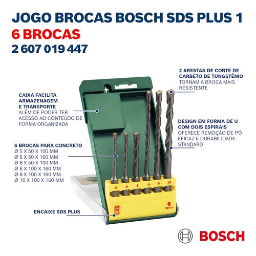 Kit Martelete Rompedor Bosch GBH 220 110v + Jogo Brocas SDS-Plus 6 Pcs