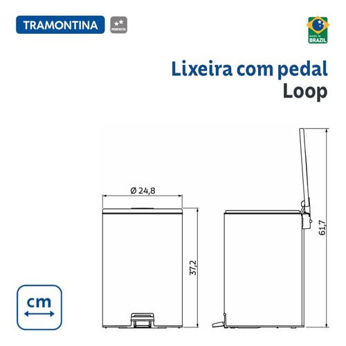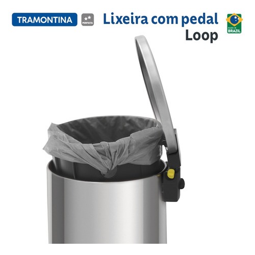 Lixeira Aço Inox 12 Litros Com Pedal Tramontina Loop