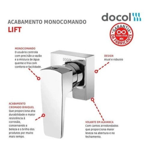 Acabamento Registro Docol Lift p/ Base Docol 1/2" 3/4" e 1" Cromado