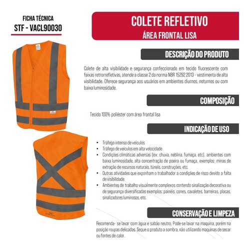 Colete Refletivo Sem Bolso Liso Laranja Steelflex