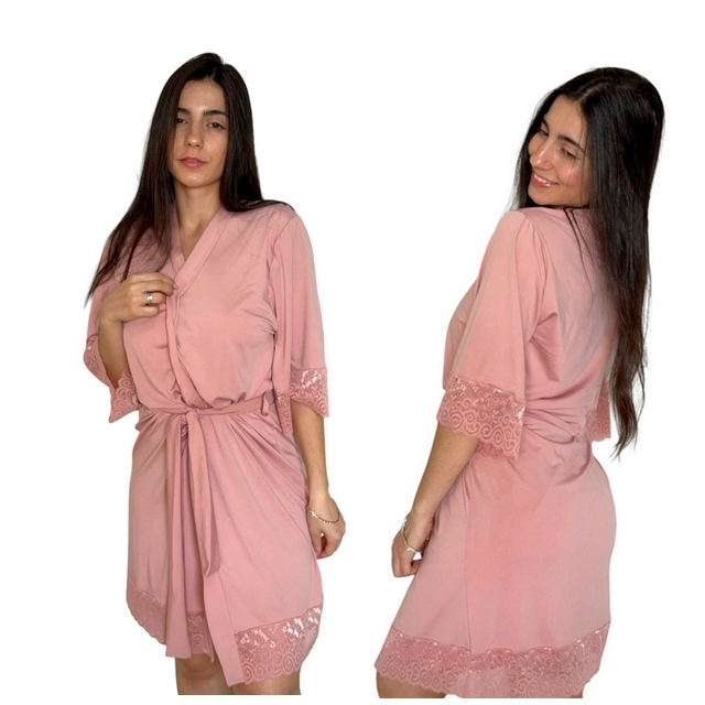 Robe Premium Romantic + Renda - Roupão Confortável Linha Noite
