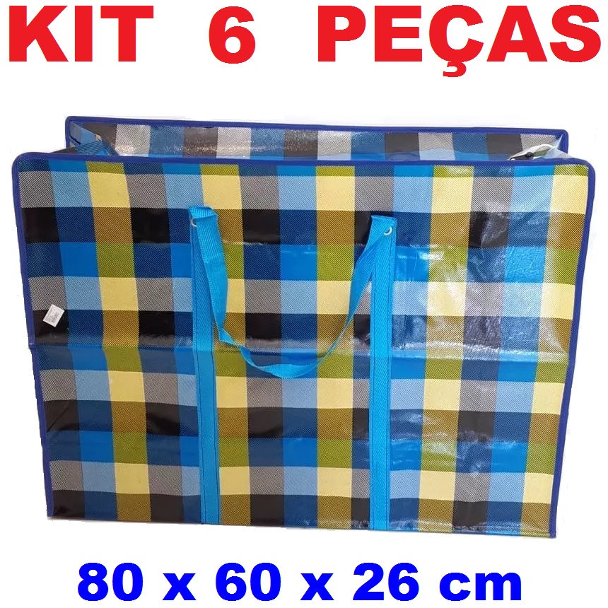 Kit 6 Sacola Bolsa Feira GRANDE 80x60x26 Sacoleira Mudança Viagem