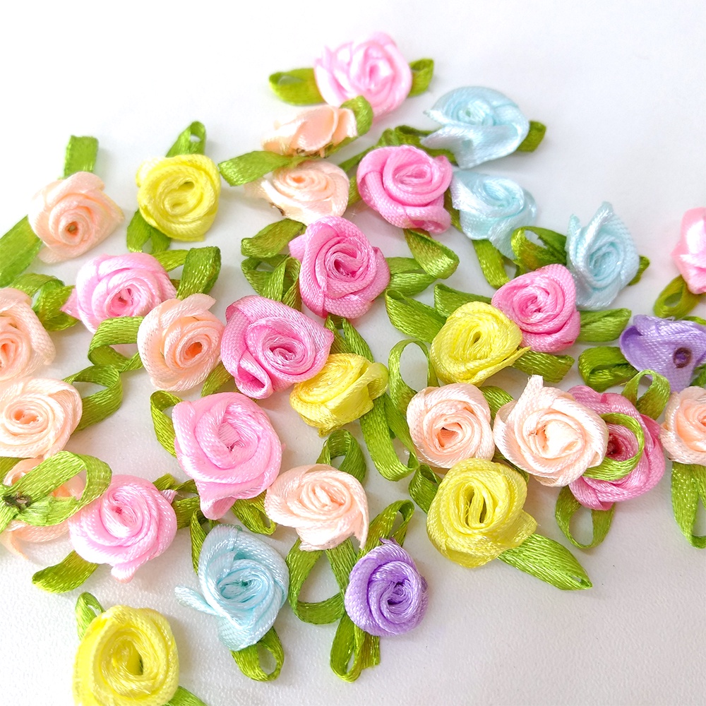 Florzinha de Fita com Folha 50 unidades rococó Flor Aplique Boneca Artesanato