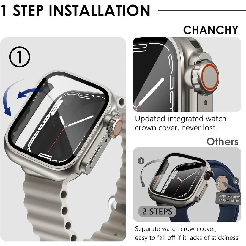 2 em 1 caso para Apple Watch 44 45 41 40 ultra vidro temperado tampa mudança iWatch série 9 8 7 SE 6 5 3 tela protetora