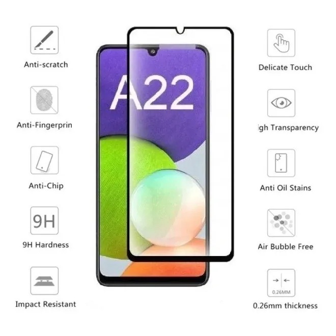 Kit Película De Vidro 3D Samsung Galaxy A22 + Pelicula Camera 3D