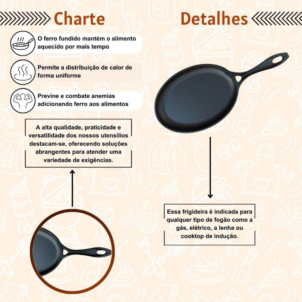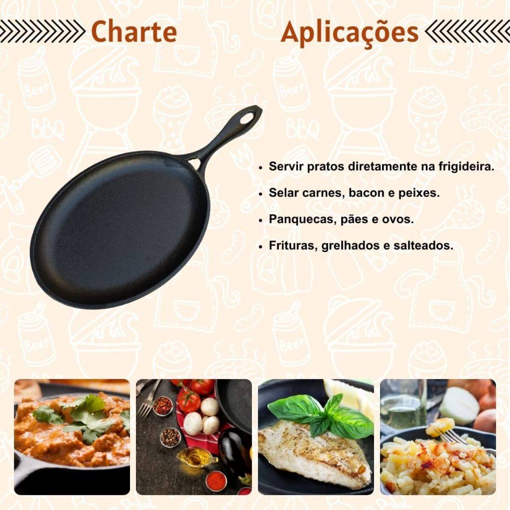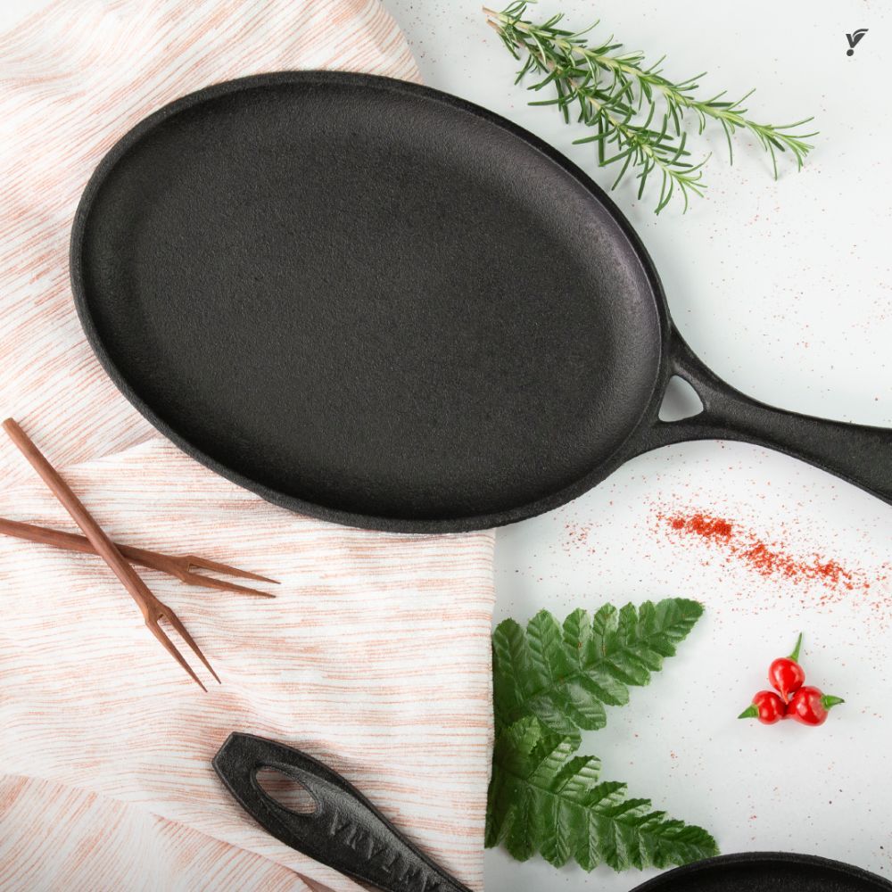 Frigideira Oval Grill de Ferro Fundido Fogão