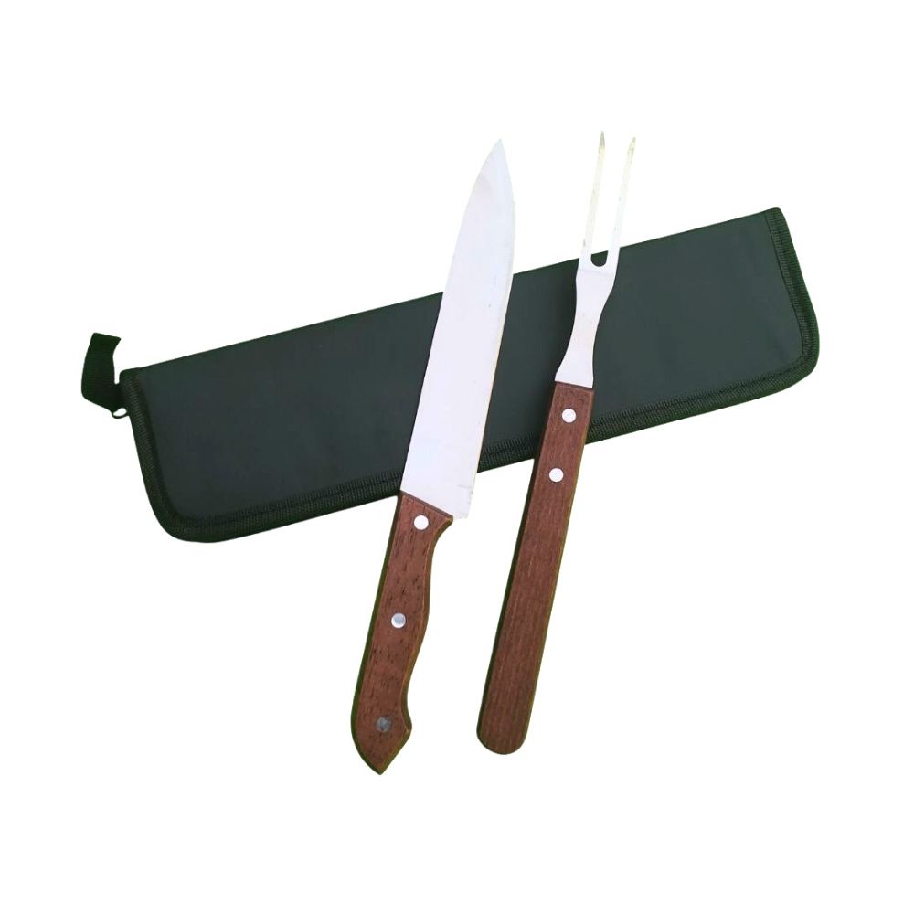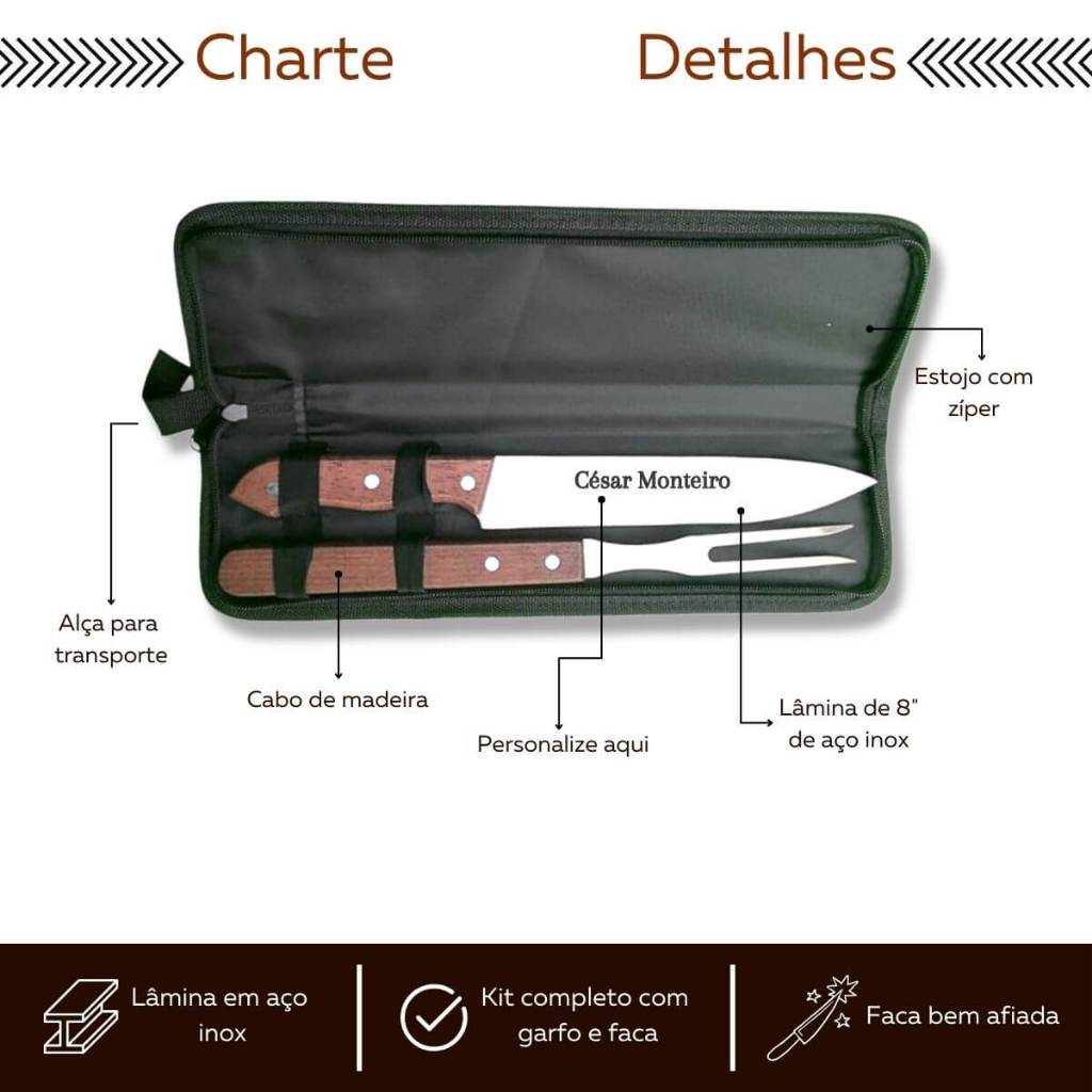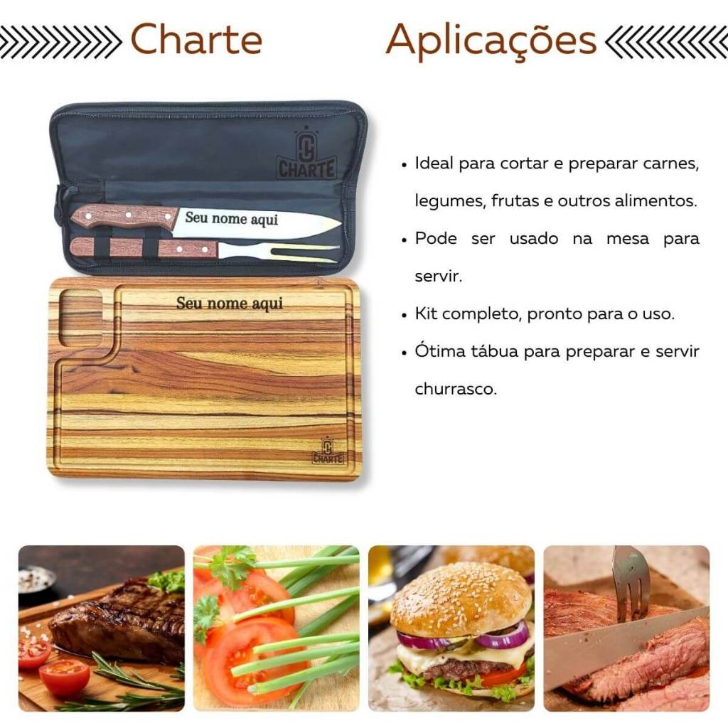 Kit Tábua de Carne com Conjunto Faca e Garfo Churrasco Personalizado Estojo