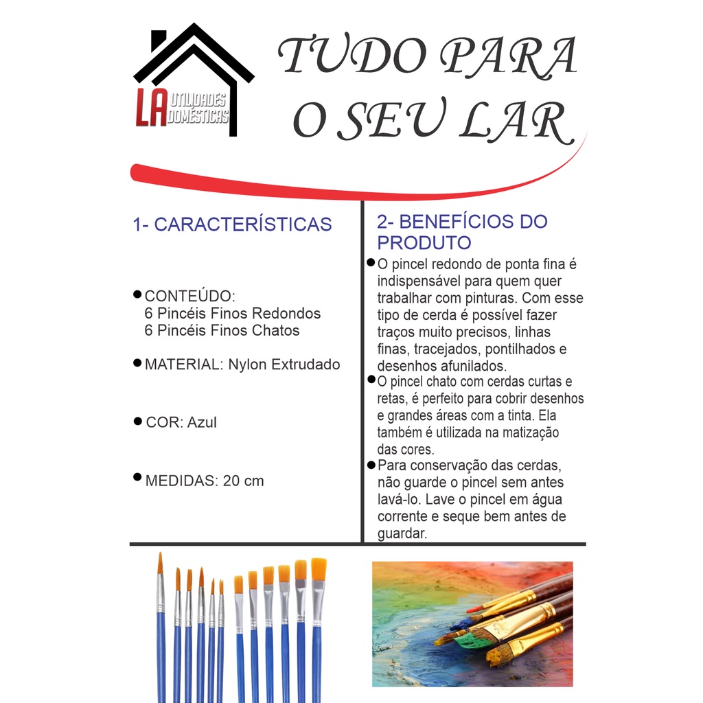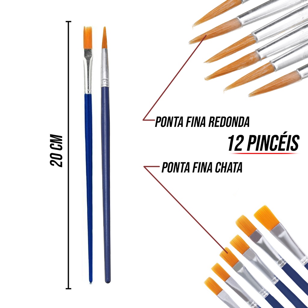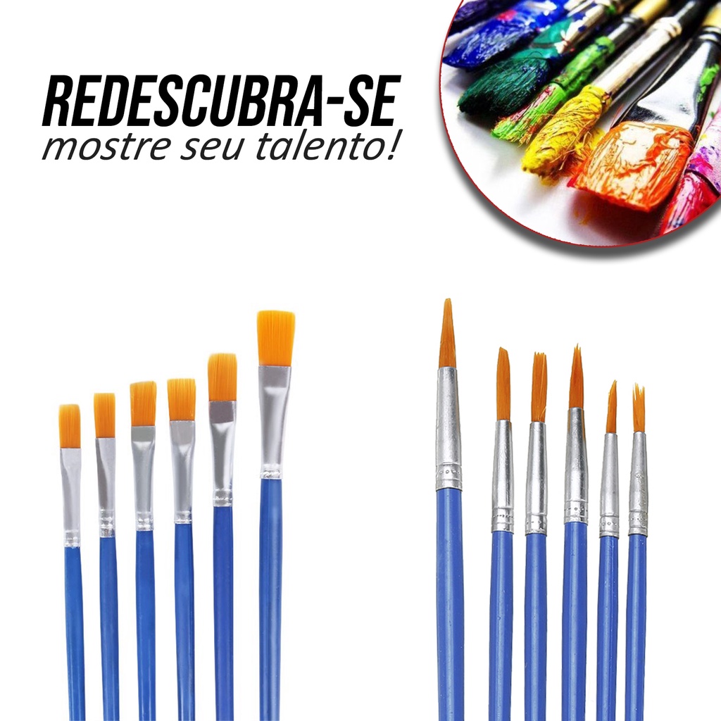 Kit 12 Pincéis Para Pintura Artesanato Artes Pintura de Rosto Ponta Fina Redonda e Chato