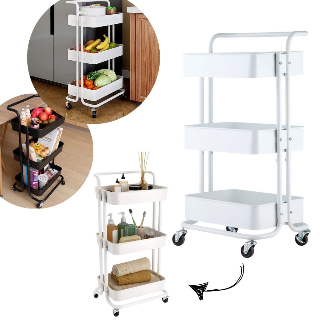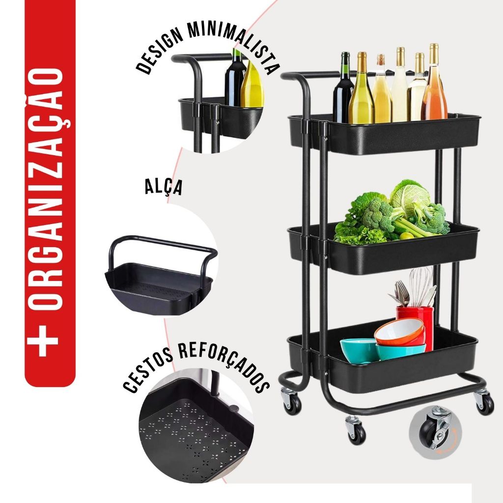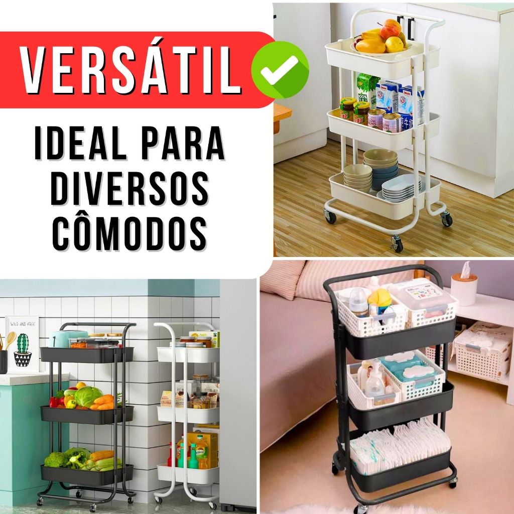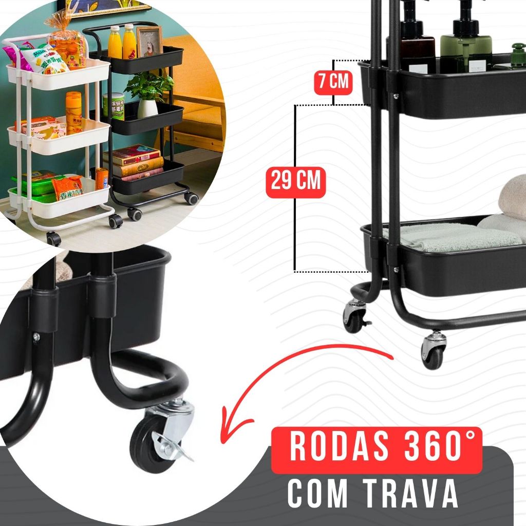 Carrinho Organizador Multiuso Com Rodinhas Manicure Banheiro Lavanderia 3 Prateleiras