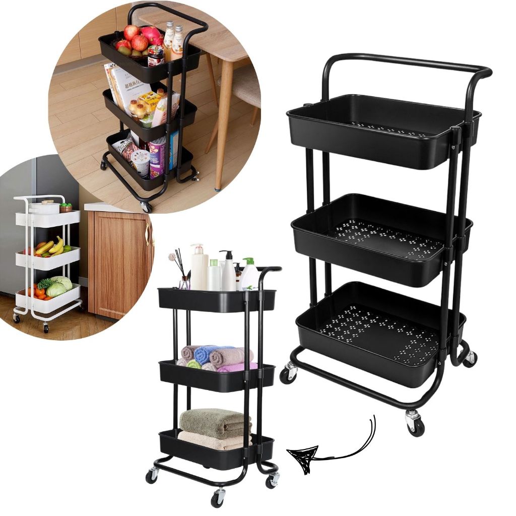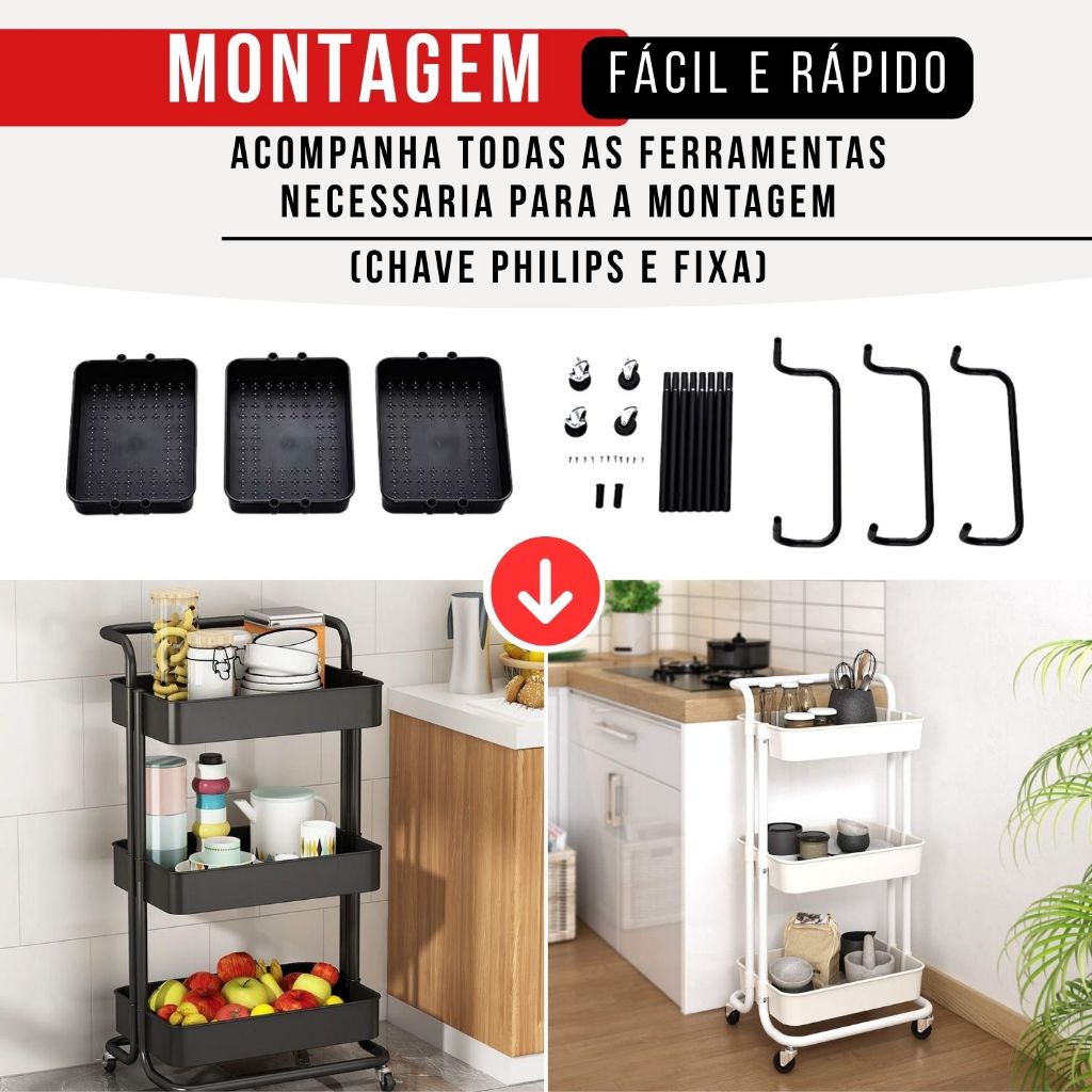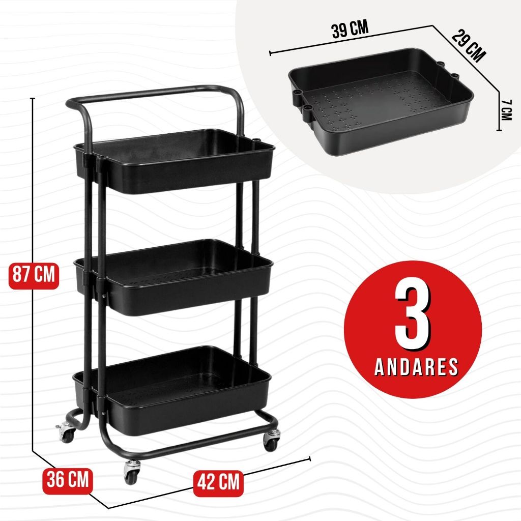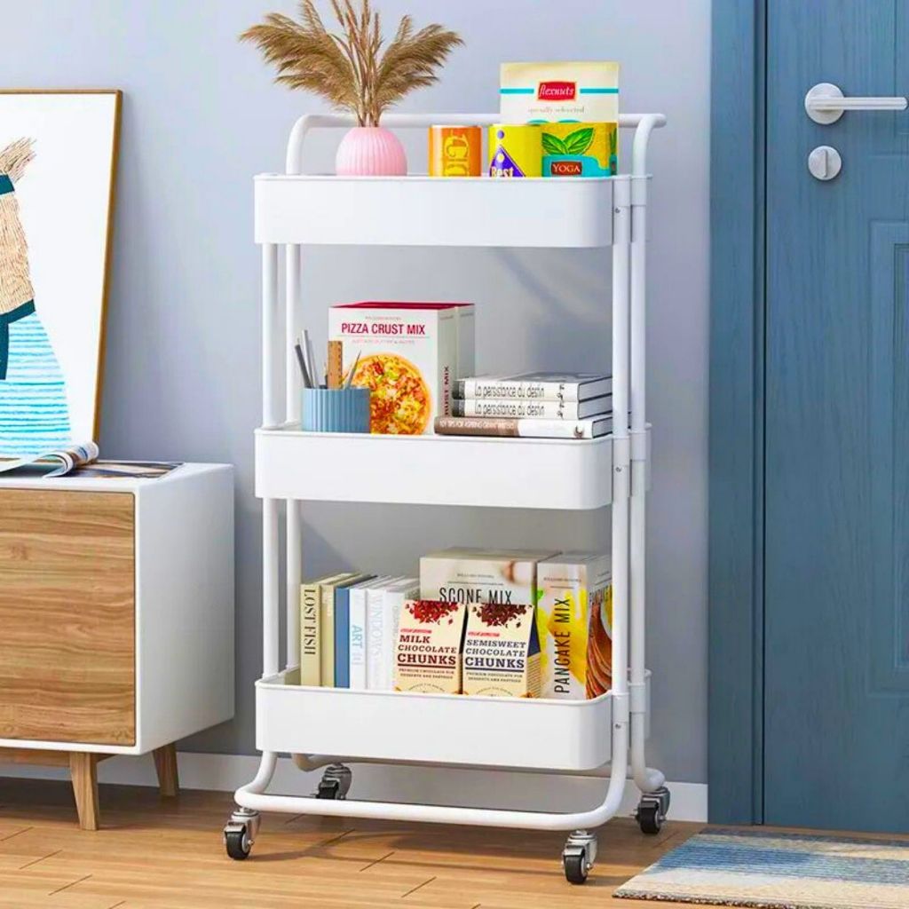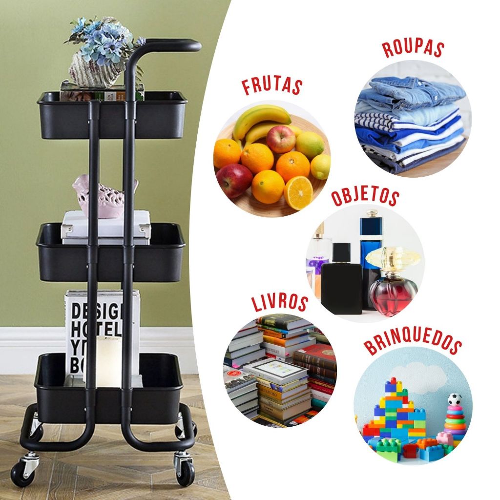 Carrinho Organizador Multiuso Com Rodinhas Manicure Banheiro Lavanderia 3 Prateleiras
