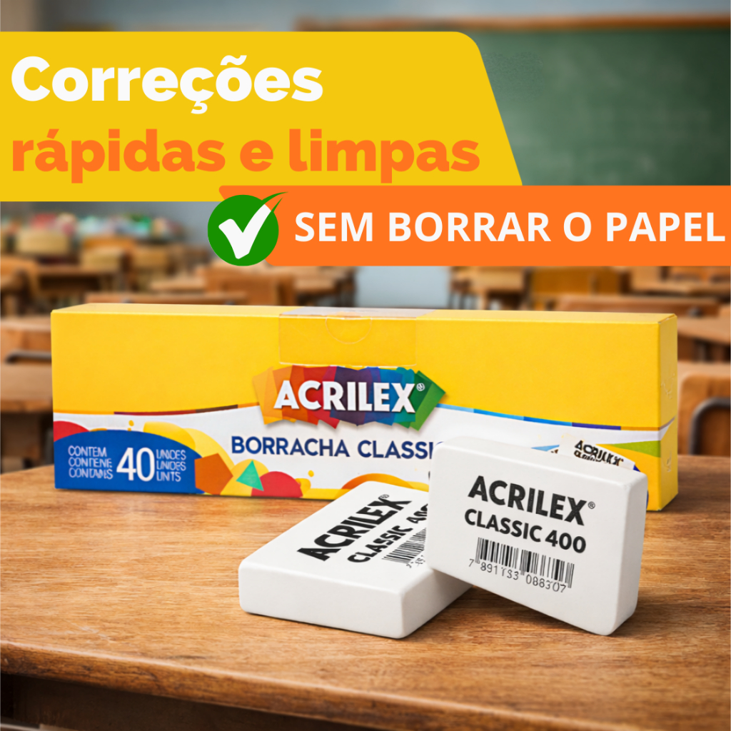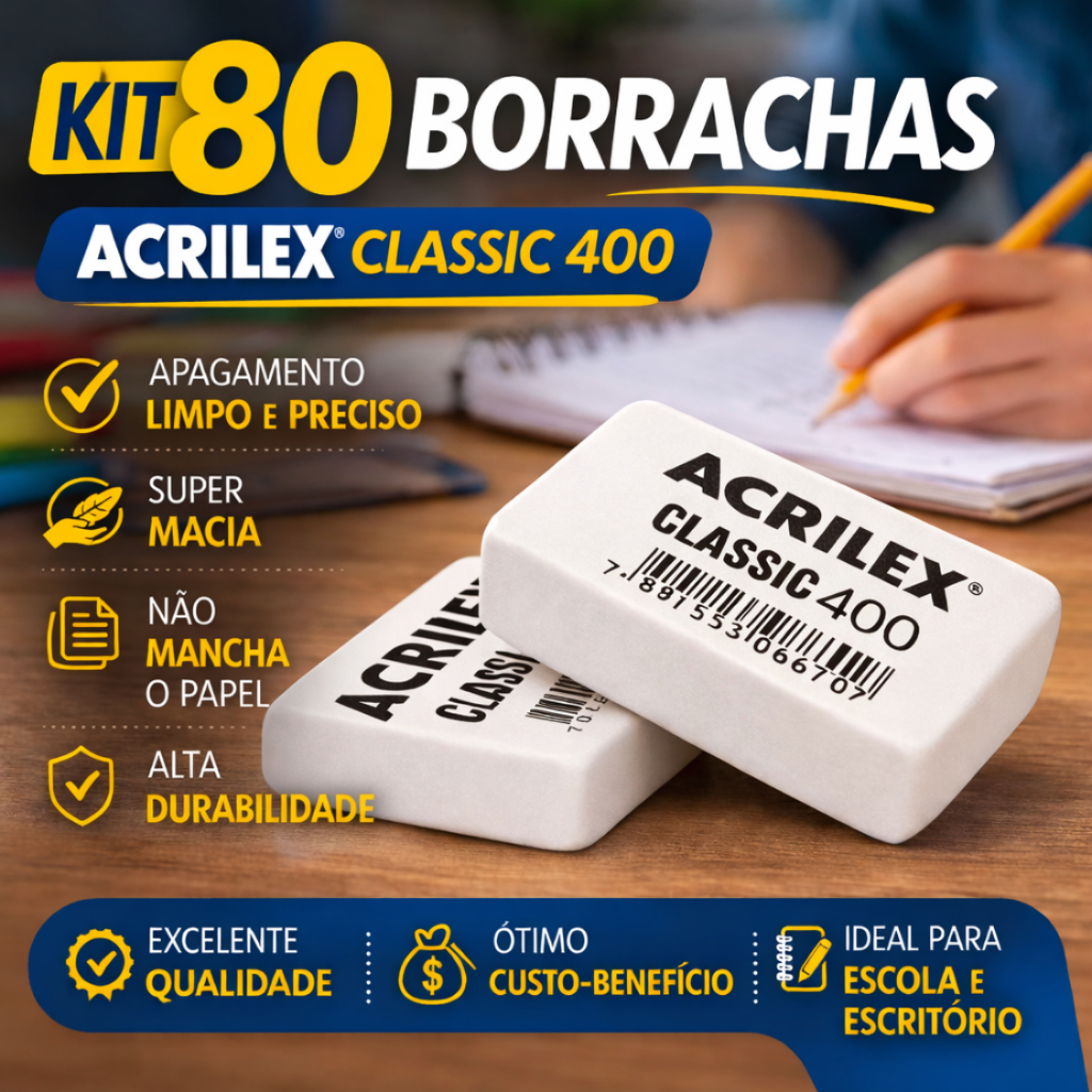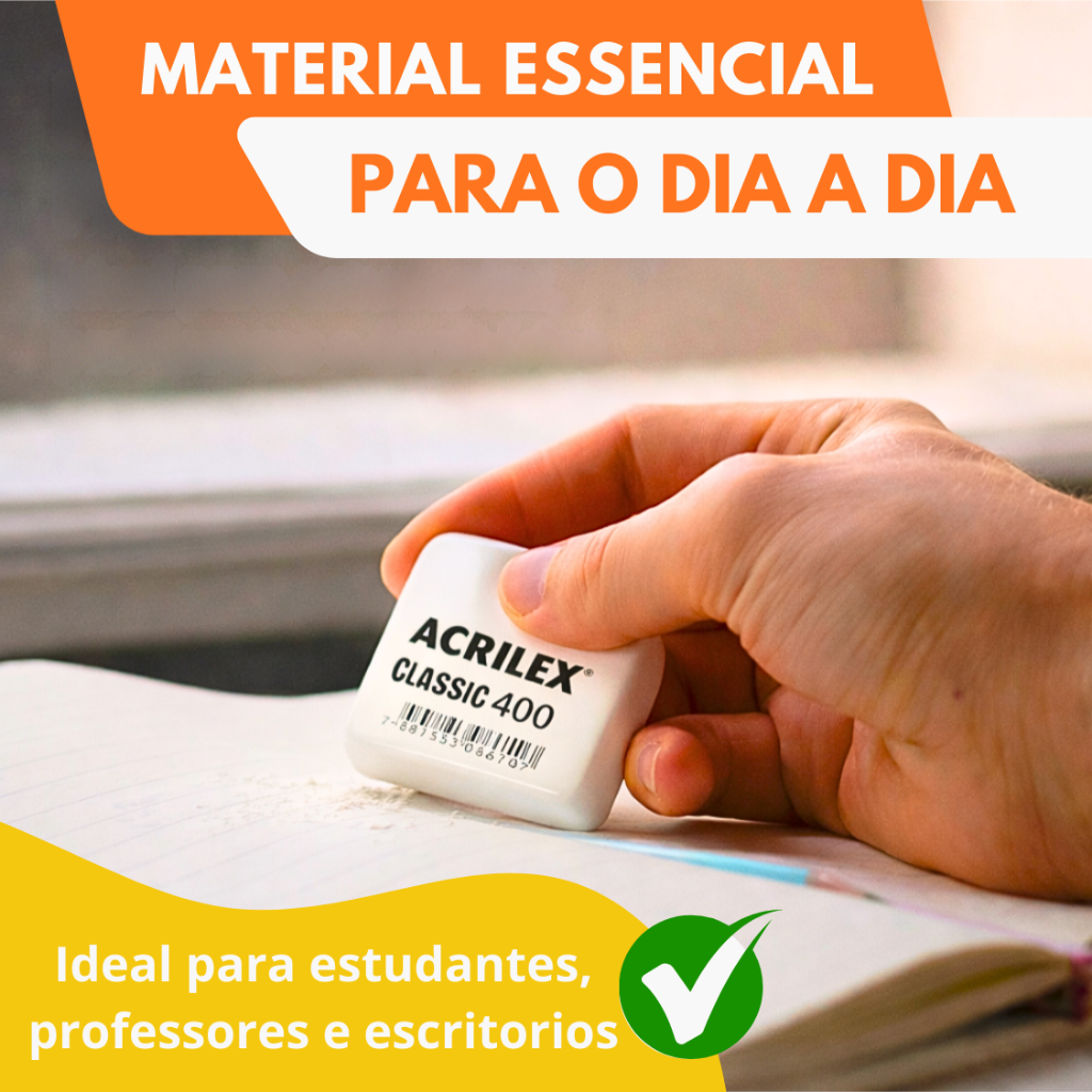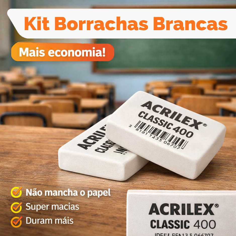 Kit 40/80 Borrachas Branca Material Escolar Escritório Caixa Não Tóxica Livre de Plástico